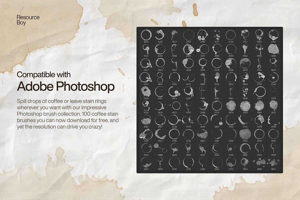 Thanks to Resources Boy for creating this awesome collection of 100 Coffee Stain Photoshop Brushes and sharing it to the community here. So, if you like it make sure to share the link then more people can use it! Also, visit their portfolio page where you can learn more about them and appreciate their other cool works!