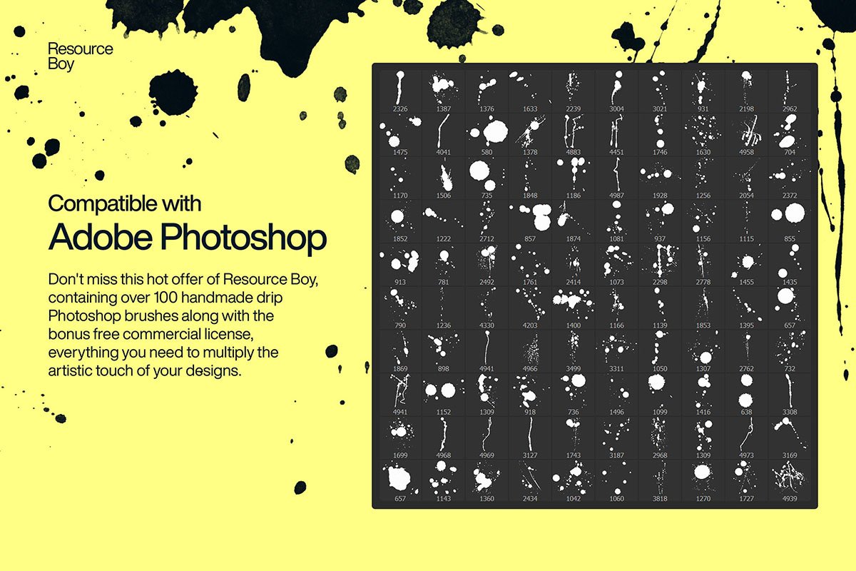 Thanks to Resources Boy for creating this awesome collection of 100+ Drip Photoshop Brushes and sharing it to the community here. So, if you like it make sure to share the link then more people can use it! Also, visit their portfolio page where you can learn more about them and appreciate their other cool works!