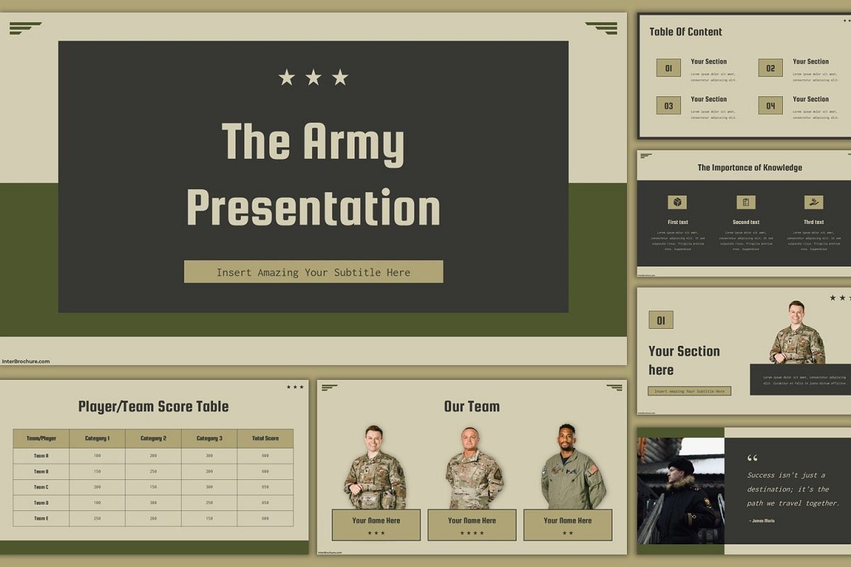 Deliver powerful presentations with the Free Army Presentation PowerPoint Template and Google Slides Theme. Perfect for military-related topics, defense strategies, or army briefings, this free template offers a professional and bold design with easy-to-edit slides.