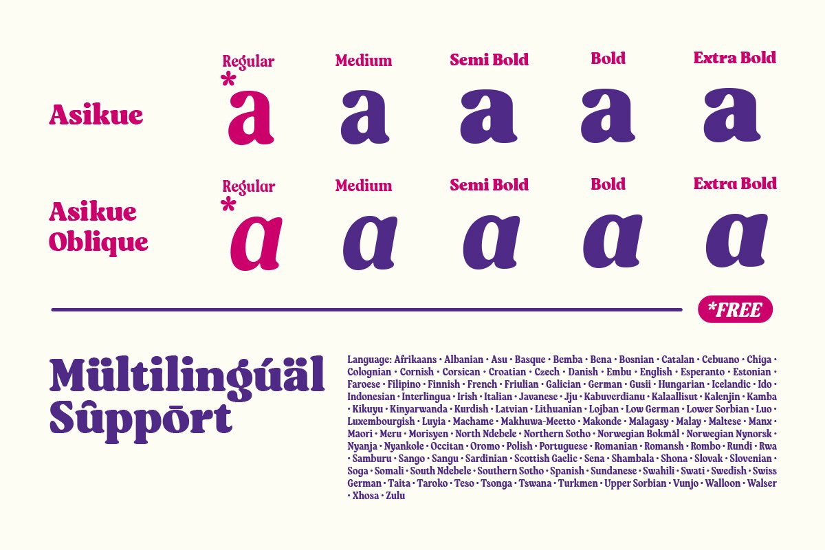 Asikue – Classy Bold Serif Font is a soft serif font family inspired by the 70’s retro styles that bring chunky retro typography to the modern era. It consists of 10 styles from regular to extra bold with each matching oblique. The font includes Opentype features: Alternate, Ligature, Swashes, etc providing you with a variety of beautiful custom text arrangements. Whether it’s a fancy retro-inspired, logo, or engaging bold header text, Asikue can deliver.