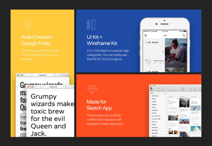 UI and Wireframe Kit for mobile projects. Each layouts are carefully crafted and based on modern design trends; each layout is well layered & neatly organized. This UI use well-choosen google font, each font is adjusted for a light reading; aware can be very useful for your next mobile app project!