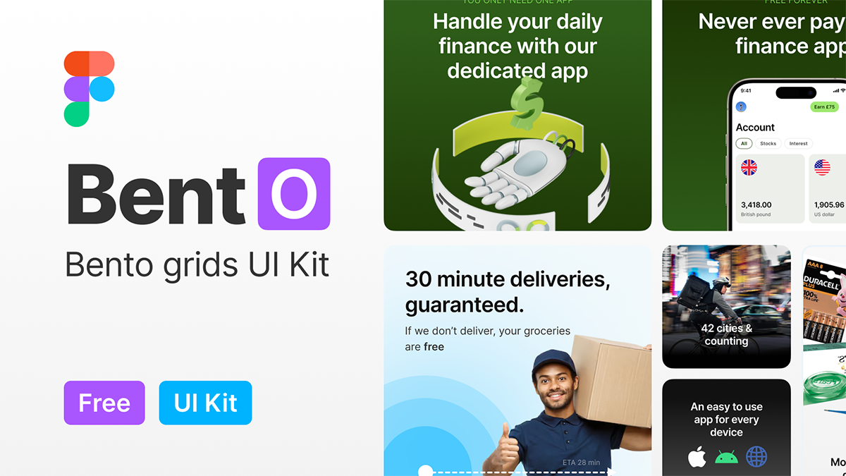 Bento Grids – Figma UI Kit is here! The Bento Grids UI style was made famous by Apple, Microsoft, and some other big companies. Now you see this UI design trend everywhere! This UI Kit is useful for your next projects, design portfolios, websites, graphics, and more. Available in editable Figma file.