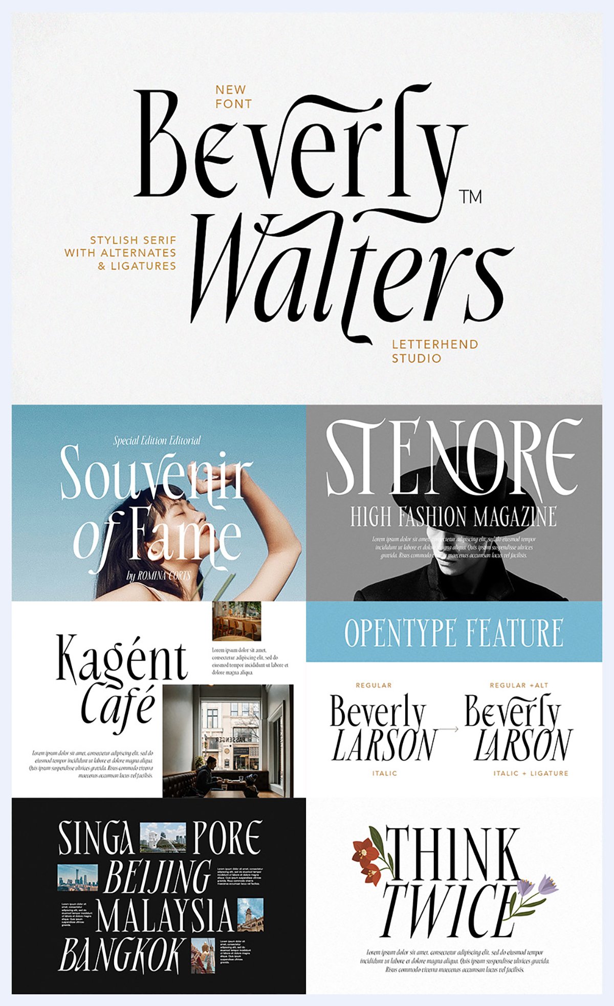 Beverly Walters Font is an elegant and artistic serif font that blends classic sophistication with modern flair. With its graceful curves, dramatic strokes, and stylish alternates, this font adds a luxurious feel to any design. Perfect for branding, fashion editorials, wedding invitations, and high-end packaging, Beverly Walters is crafted for creators who seek timeless beauty and contemporary edge. Includes unique ligatures and alternates to elevate your typography game.