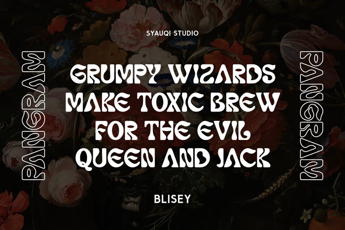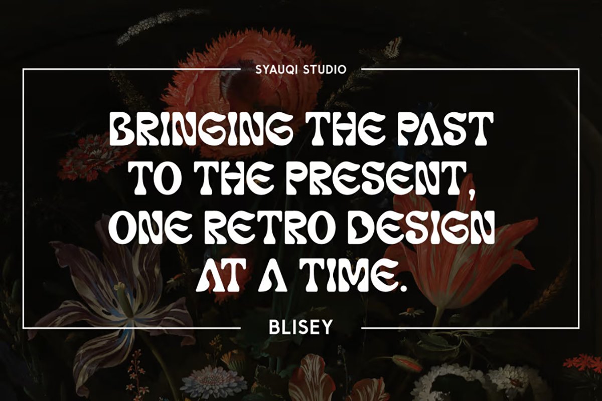 Thanks to Syauqi Studio for sharing with us this exquisite font! However, this Blisey – Psychedelic Retro Font is only a demo version available for personal use. So, if you want to access more its full features and license, go get the premium version as well!