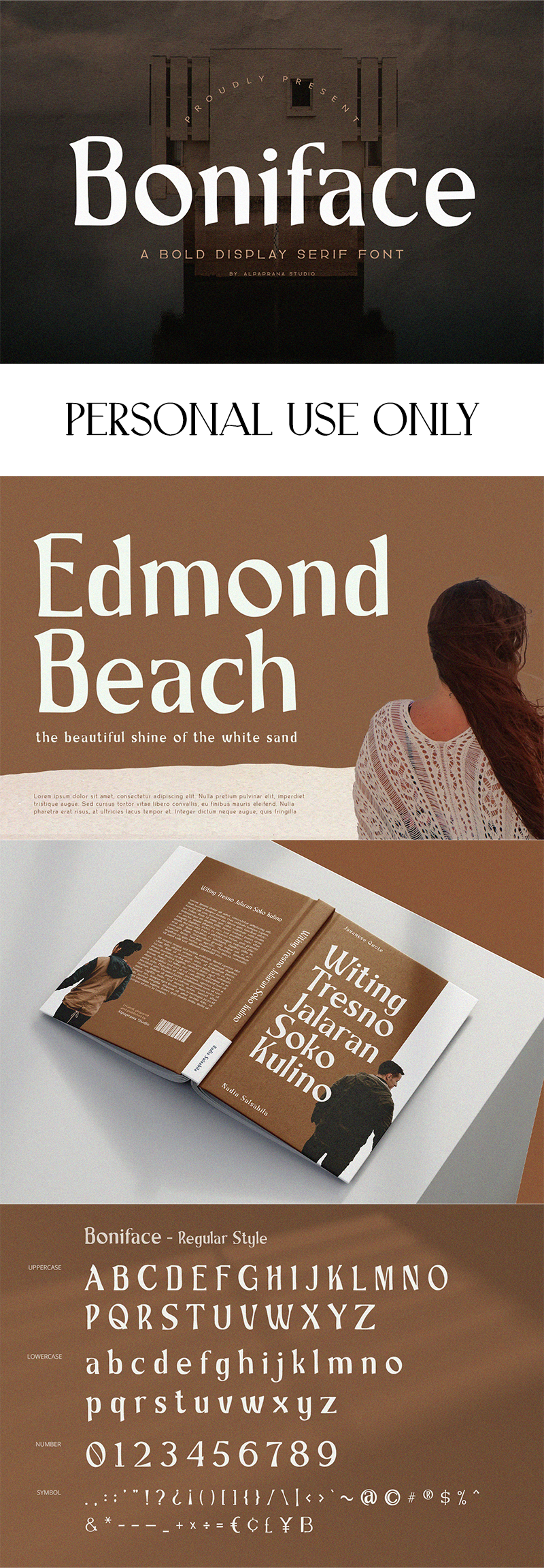 Thanks to Alpaprana Studio for sharing with us this exquisite font! However, Boniface – Display Serif Font demo is only available for personal use. So, if you want to access more its full features and license, go get the premium version as well!