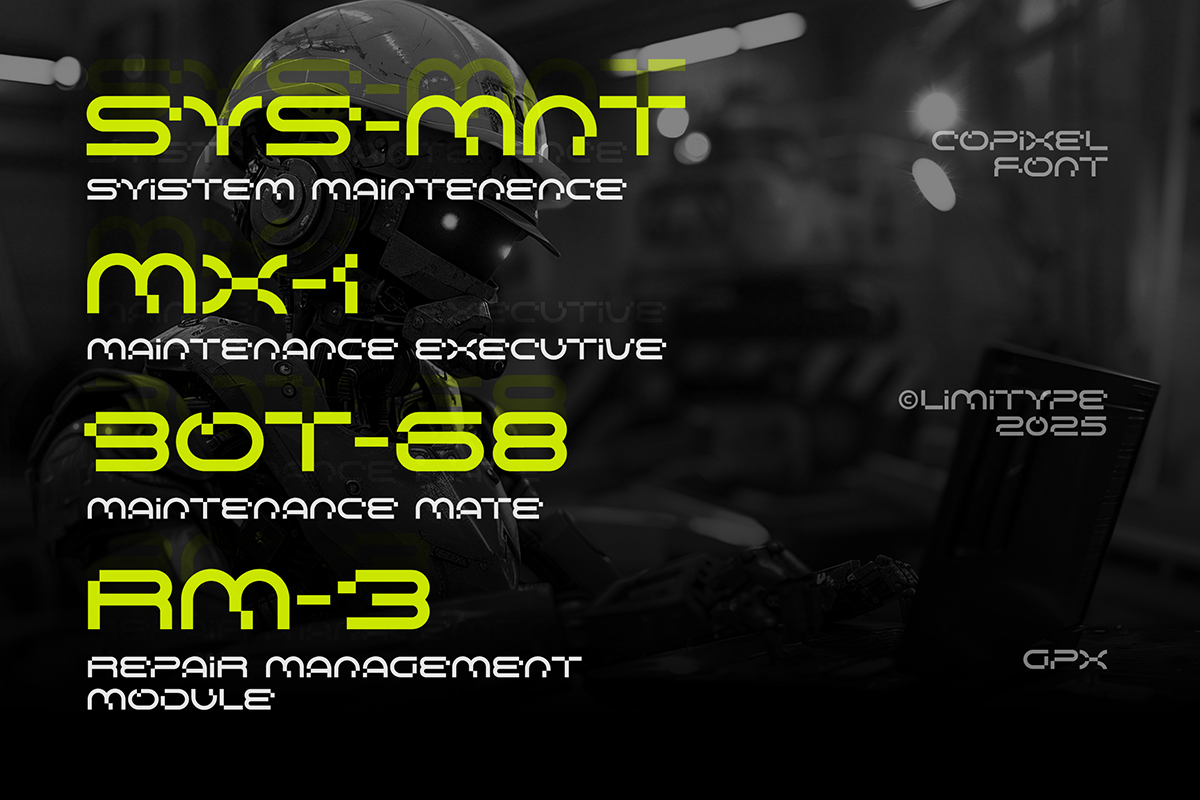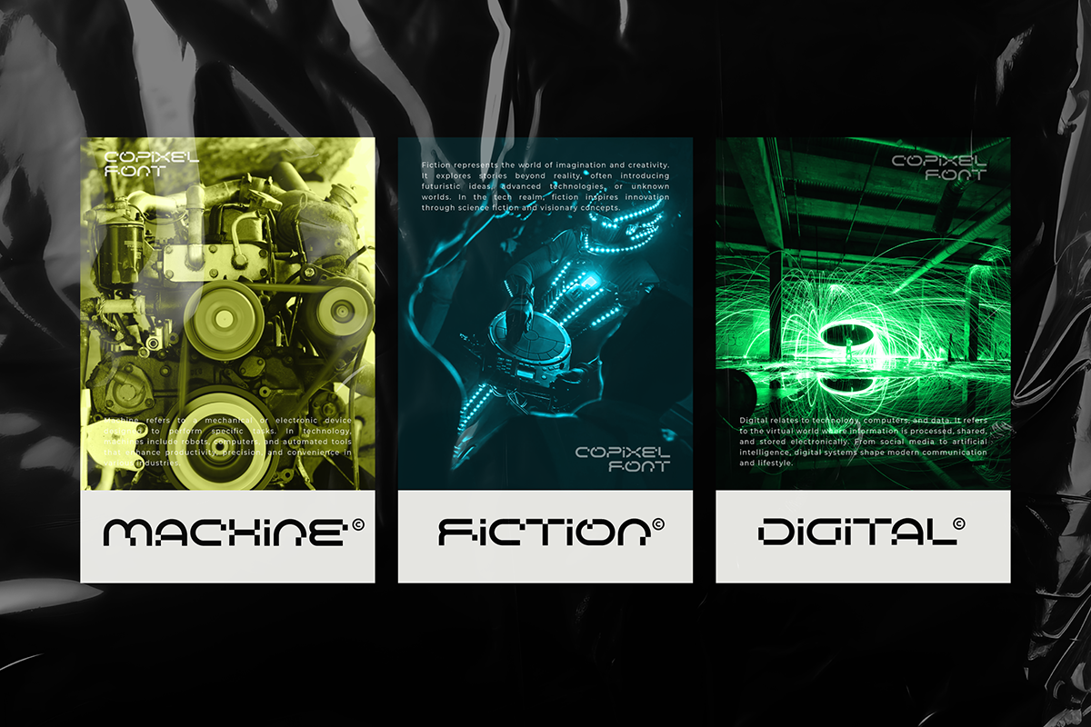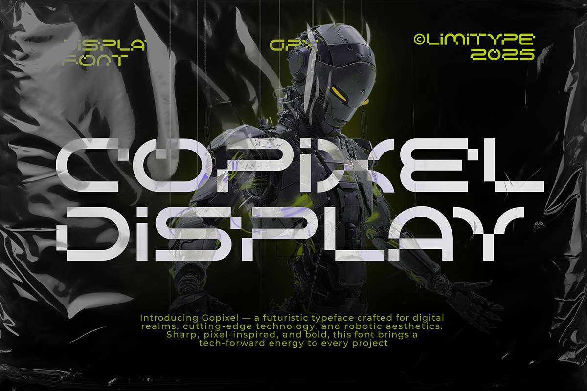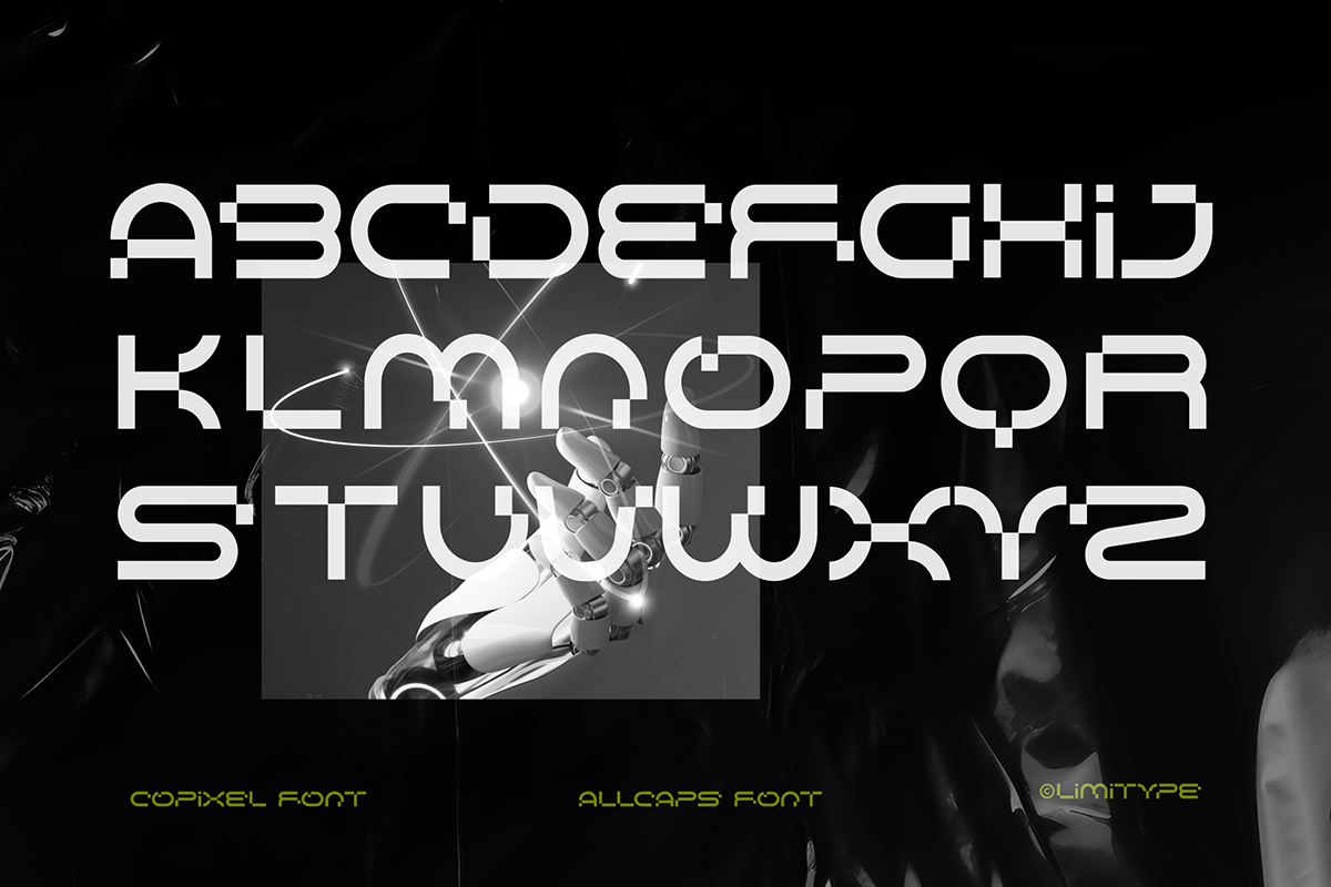 Introducing Copixel – Futuristic Font, a bold futuristic typeface designed for digital worlds, advanced technology, and cyber-inspired projects. It combines sharp, pixel-based details with a modern, robotic aesthetic, making it perfect for tech, gaming, sci-fi, and cyberpunk themes. Its strong, geometric shapes deliver a powerful digital feel, ideal for headlines, posters, logos, and futuristic interfaces. Bring a cutting-edge, tech-forward vibe to your designs with Copixel Font.