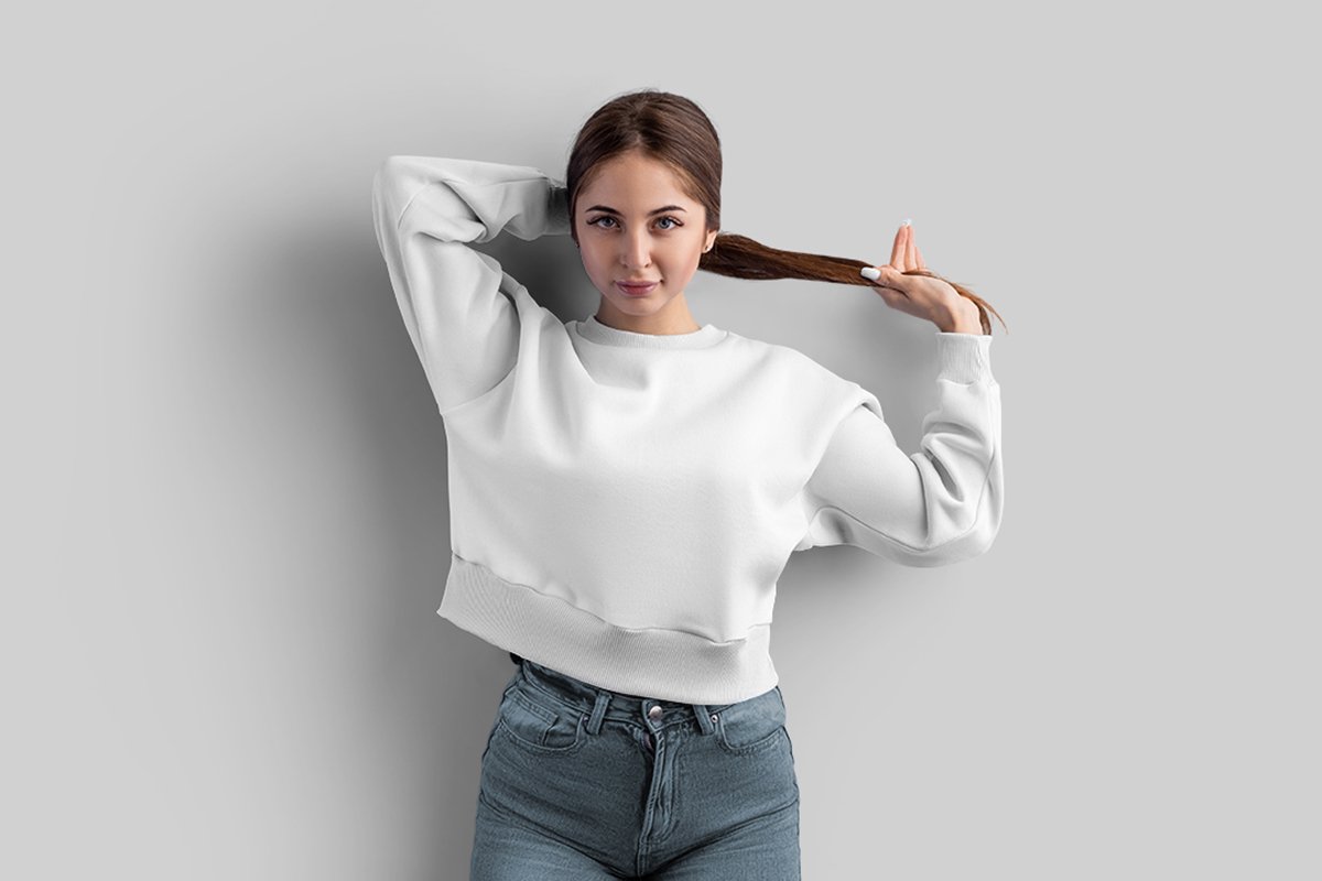 Crop Top Sweatshirt Mockup is here! You can customize it easily from the colors of all elements on the T-shirt, and background. Also, all layers are organized, renamed and marked for a better ergonomics of the files and an easy to use. You can easily change the pattern on the sweatshirt to any other.