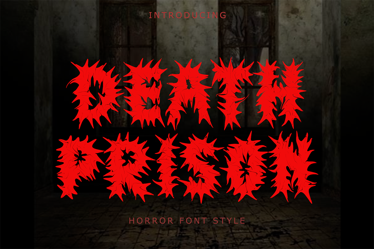 Death Prison – Display Fontis a special edition font with a unique horror theme with thorns on each letter. Equipped with uppercase letters, lowercase letters, numerals, punctuations and multilingual support. Very suitable for film titles, book covers, metal concerts, horror, spooky, Halloween and others.