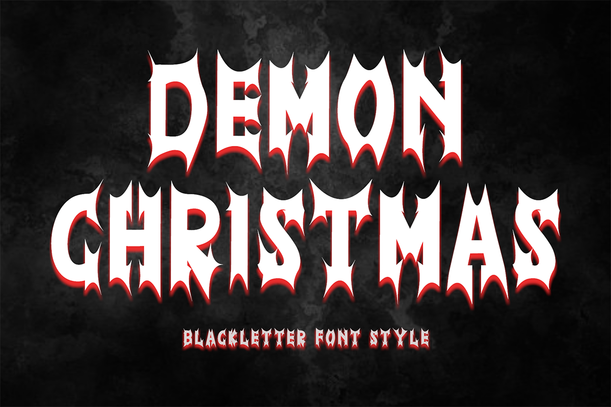 Demon Christmas – Display Font is a spooky horror blackletter font. This font is equipped with uppercase, lowercase, ligatures, numerals, punctuations and multilingual support. It is very suitable for use for Halloween moments, invitations, metal concerts, horror movies, horror comics, and others.
