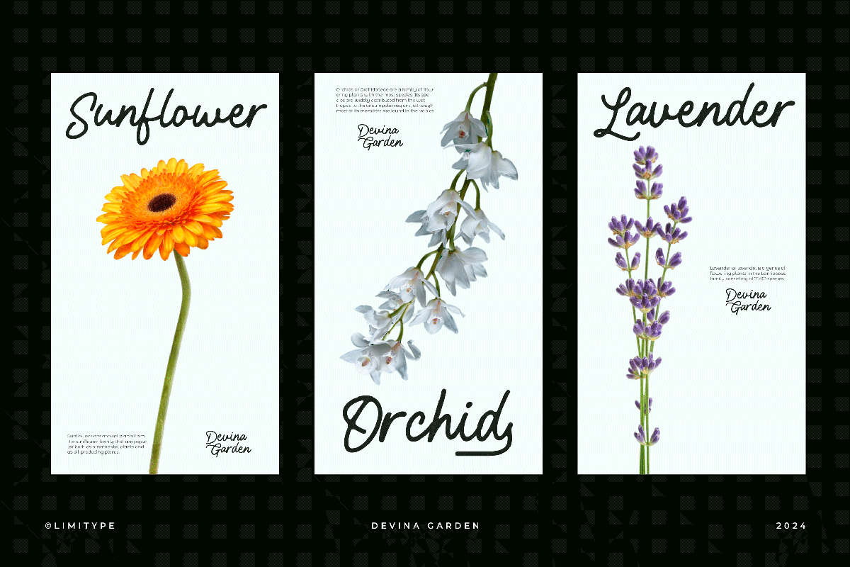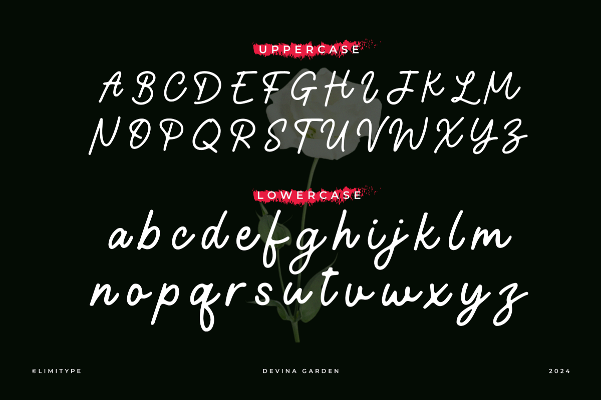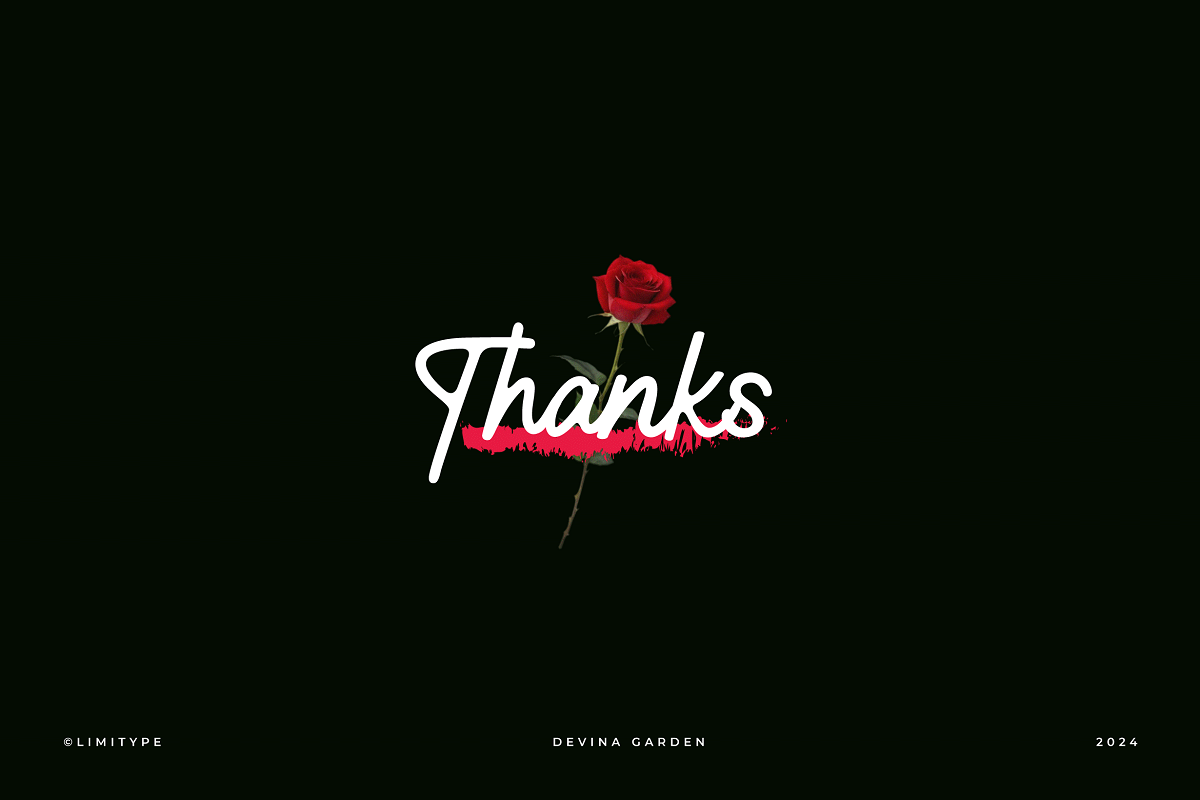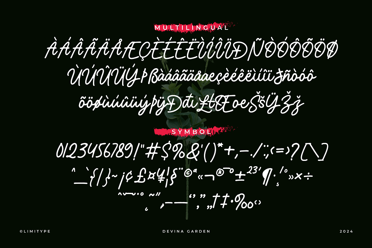Thanks to Limitype for sharing with us this exquisite font! However, Devina Garden – Script Font demo is only available for personal use. So, if you want to access more its full features and license, go get the premium version as well!