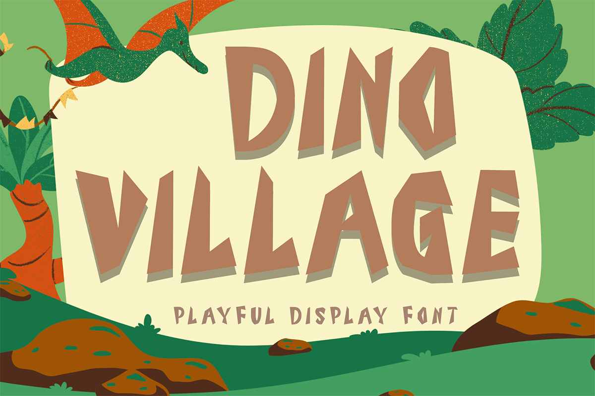 Dino Village – Display Font is a unique and playful font. This font is equipped with uppercase, lowercase, numerals, punctuations and multilingual support. It is very suitable for use for movie titles, cartoons, animations, posters, prints, banners, branding, stickers, logos, business branding and others.
