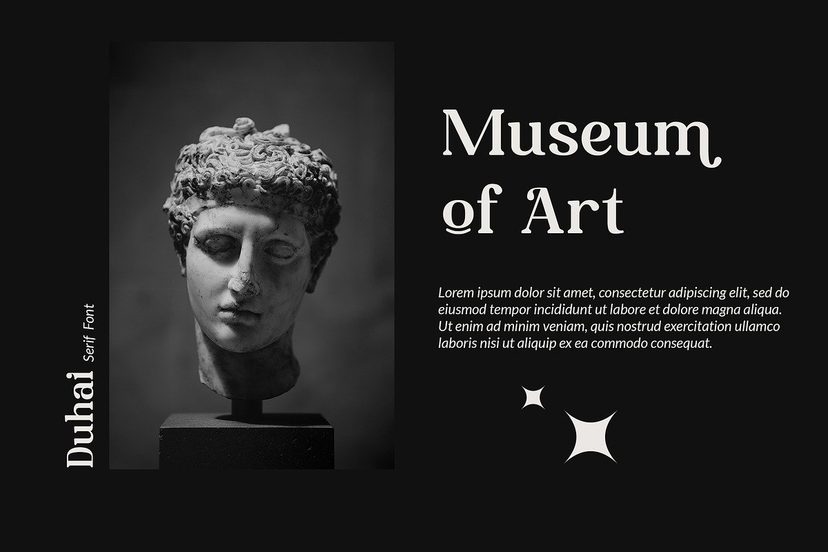 Duhai – Display Serif Font is a retro serif font. It is designed to bring a touch of vintage charm to your creative projects. Perfect for posters, branding, and editorial designs, It combines classic serif elegance with nostalgic flair, making your text stand out with character and style.