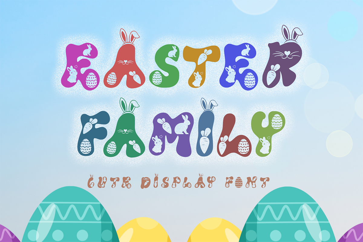 Easter Family – Display Font is a unique and cute font by Yoga Letter. This font is equipped with uppercase, lowercase, numeral, punctuations and multilingual support. Very suitable for use for Easter, animal, comic, cartoon, funny movie titles, logo, sticker, poster, print, branding and others.