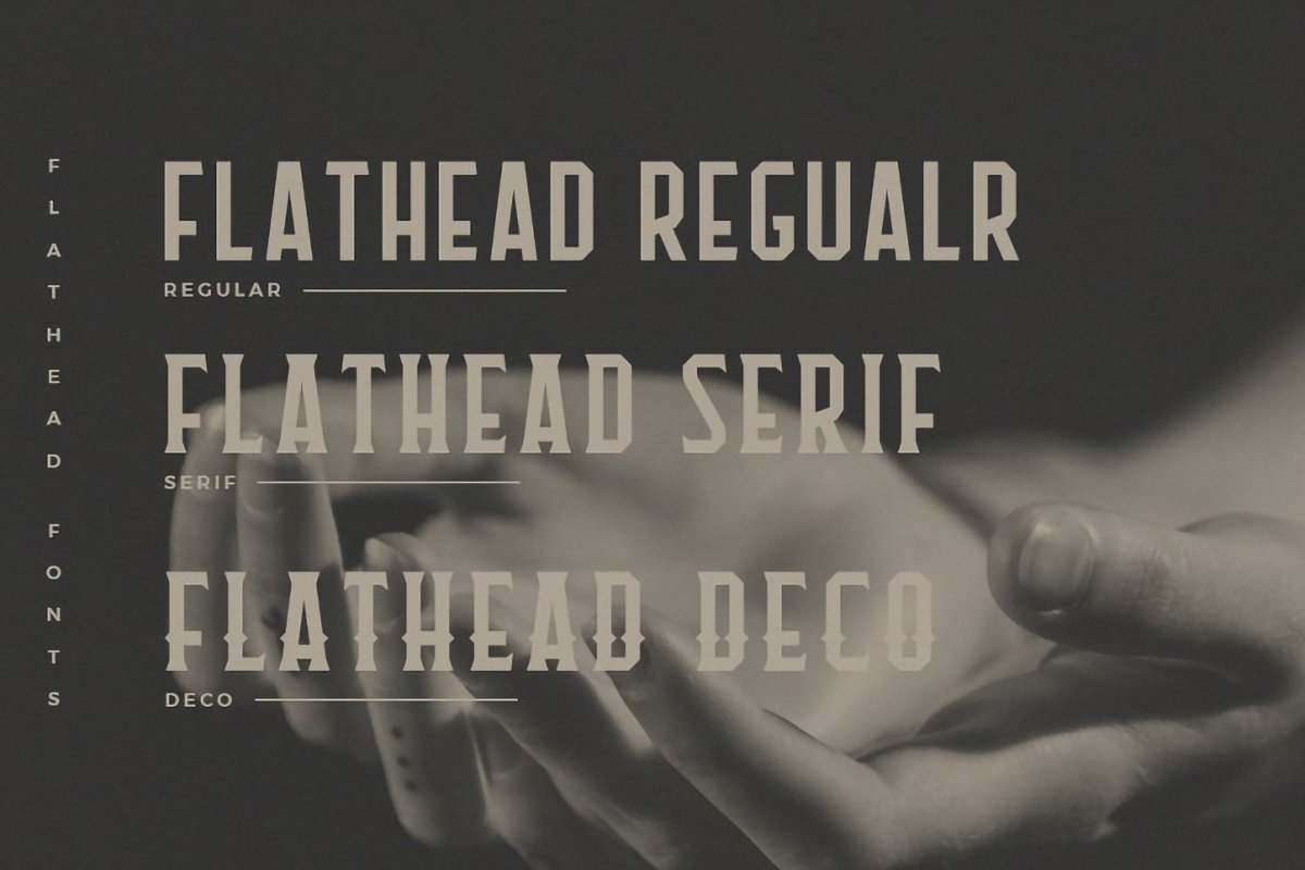 Flathead Typeface Free Demo is one that you can get out of Flathead family. This family comes with 3 fonts with a mono weight and different decorations. Inspired by American western culture and tattoos, Flathead is perfect for vintage designs. It is also suitable for any project that requires an old western feel as the core design elements. Hence, this demo font goes well on the logo, greeting card, poster, etc.