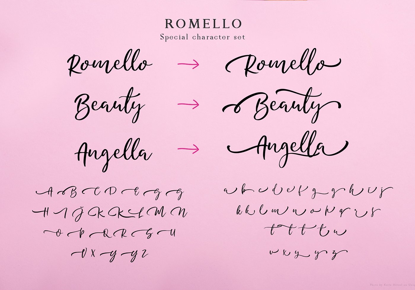 Free Romello Typeface Script Font is a beautiful script font. It is suitable for your projects such as wedding invitations, gift cards, flyers, banner, congratulation cards, and more. This font is available for the TTF format file that you can install on your devices as well. It al has some glyph style, you can match it based on your design need. However, this demo font is coming with a personal license use, but if you want to get more features, make sure you purchase it.