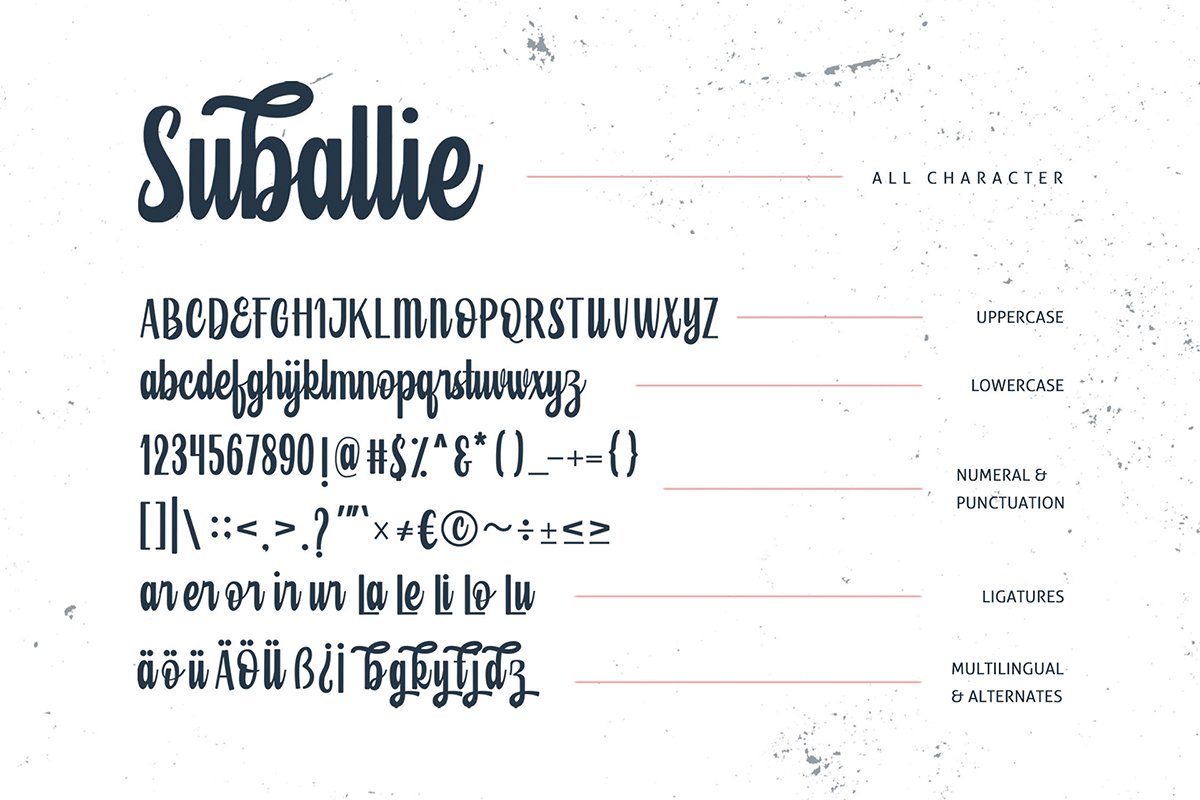 Thanks to Inspiratype for providing us with this awesome font! However, Free Suballie Script Font is only available for personal use. So, if you want to access more its full features go get the premium version as well!