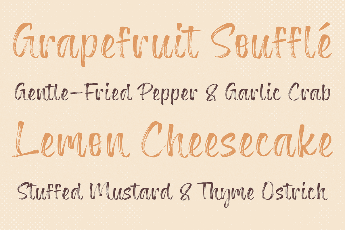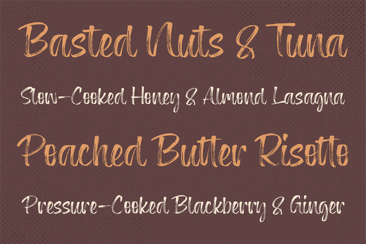Introducing Frinkle Brush! Frinkle Brush is a readable and finely balanced handwritten font. With consistent and natural detail, Frinkle Brush also come with underline swash (You can access it by typing s1-s3). Frinkle Brush can be placed in many design needs such as, merch, branding, packaging, social media, events, and many more.