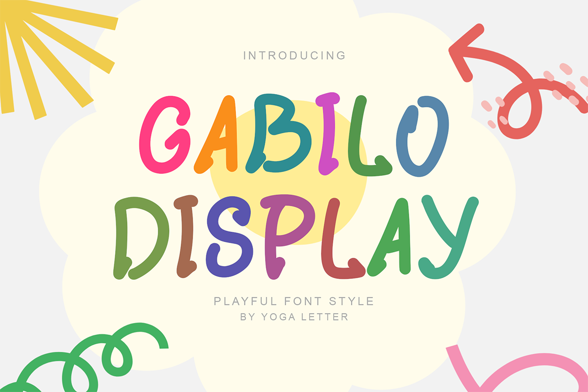 Gabilo Display Font is a playful font by Yoga Letter. This font is very cute and looks colorful. Equipped with uppercase letters, lowercase letters, numerals, punctuation, and multilingual support. Very suitable for children’s fonts, summer, holidays, back to school, comics, children’s toys, cartoons, book titles, film titles, and others.