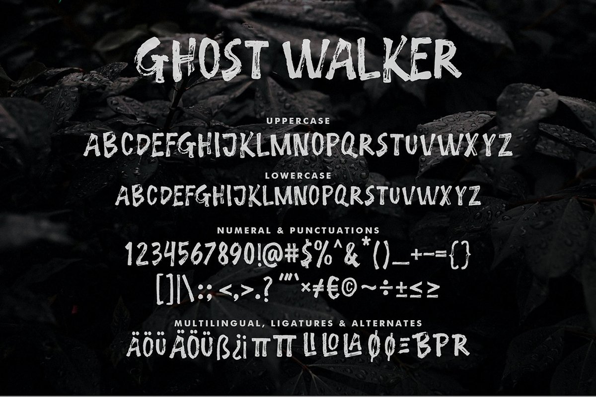 Thanks to Inspiratype for providing us with this exquisite font! However, Ghost Walker Brush Font is only available for personal use. So, if you want to access more its full features and license, go get the premium version as well!