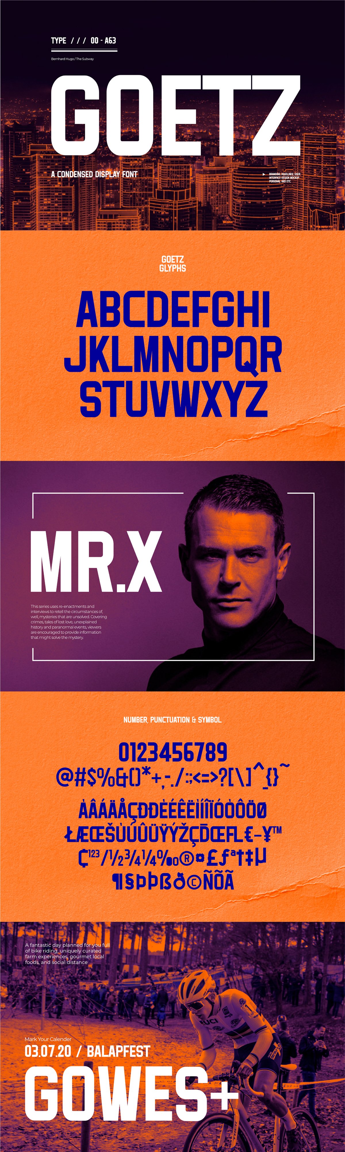 Goetz Free Display Font is a bold and unique modern display font created by Roghib Fakhri. This all-caps condensed font is perfectly suited for use in tech, industrial & sport themes. Use it for logos & branding, headlines, posters, advertising, marketing and much more.