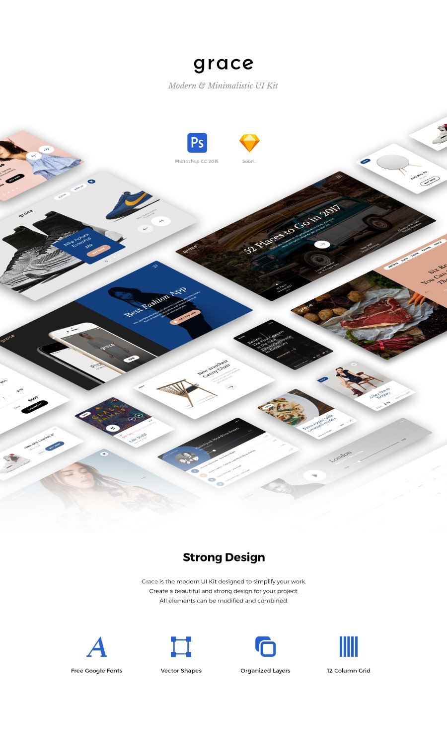 Illia Nesterov has coming again with his latest design project! today you can have a try on Grace UI Kit Free Sample. Grace is the modern and minimalistic UI Kit that will help you simplify your work. Here you can have 2 freebie pages made with custom Grace UI Kit components. The files are available in PSD format. This sample is very easy to customize since all the layers are arranged with name and folders neatly. Create a beautiful and strong design for your new great project!