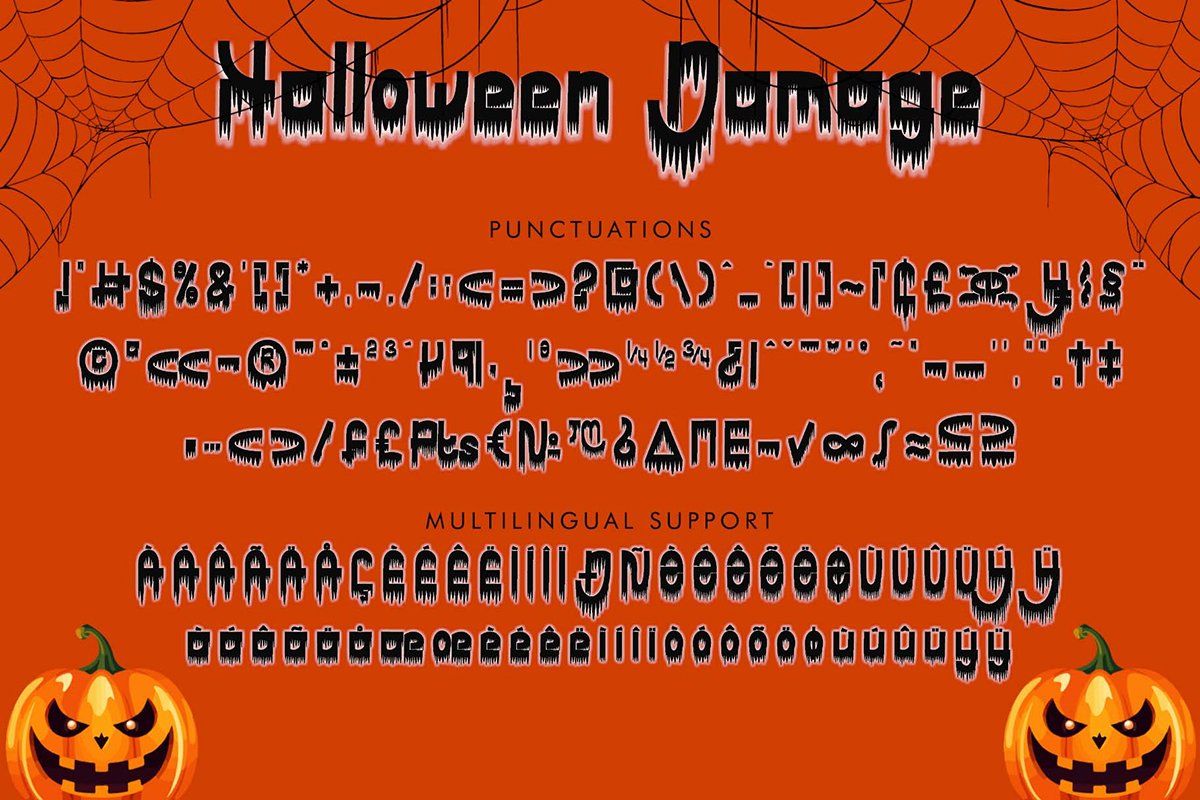 Thanks to Yoga Letter for sharing with us this exquisite font! However, this Halloween Damage – Display Font is only a demo version available for personal use. So, if you want to access more its full features and license, go get the premium version as well!