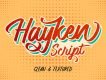 Hayken Script Font is a brush script font with a dynamic and energetic style. There are two types of styles (clean and textured). It can used for various purposes such as titles, logotypes, t-shirt designs, letterheads, signage’s, labels, newsletters, posters, badges, and every other design which needs an unique, striking font.