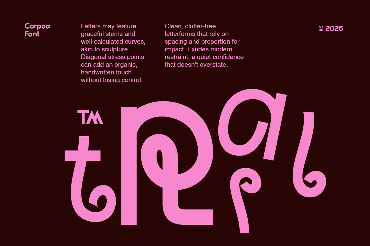 Hayko – Display Font is a unique and bold display font that blends corporate precision with experimental creativity. Its distinctive curves, playful shapes, and modern construction make it stand out in branding, editorial layouts, digital campaigns, and innovative corporate projects that seek originality.