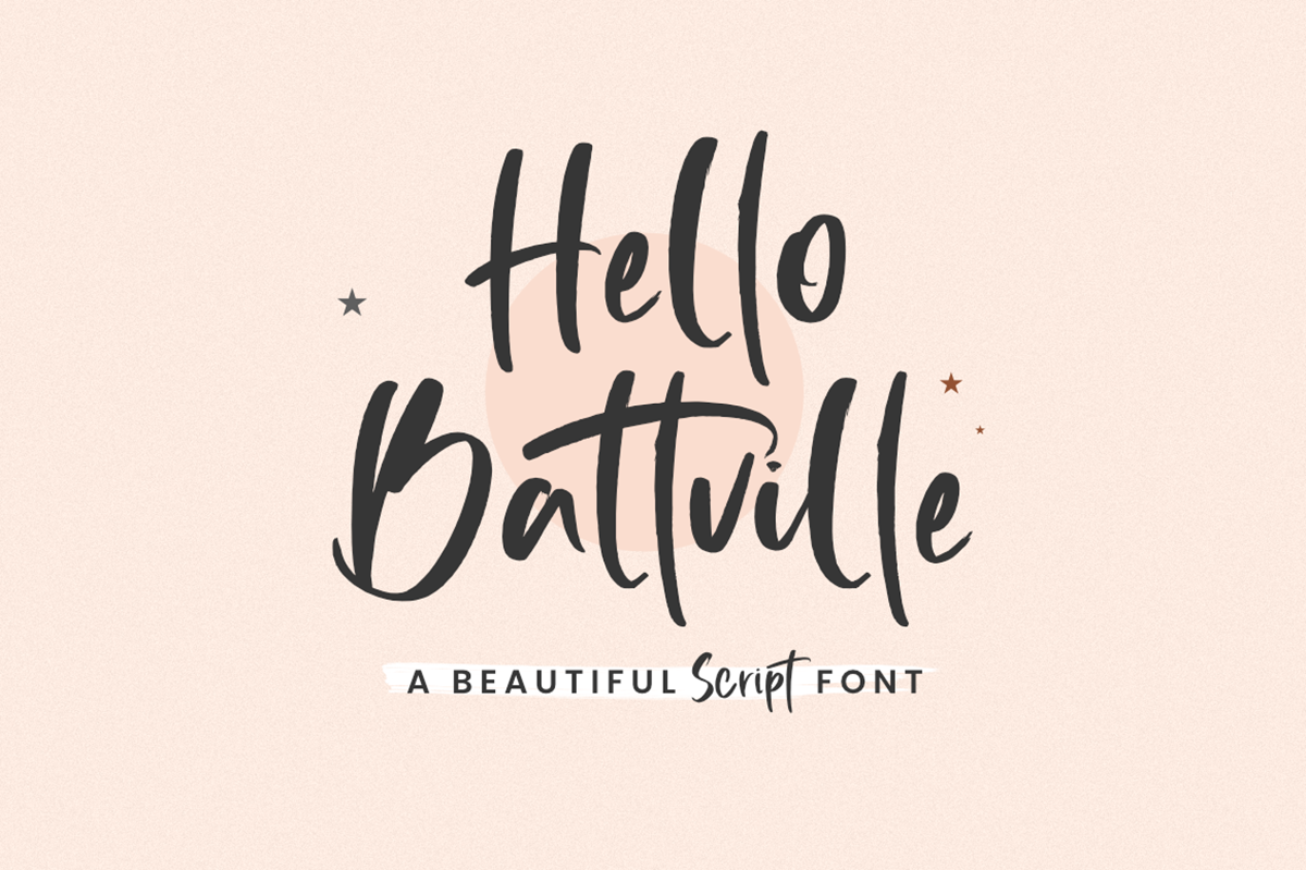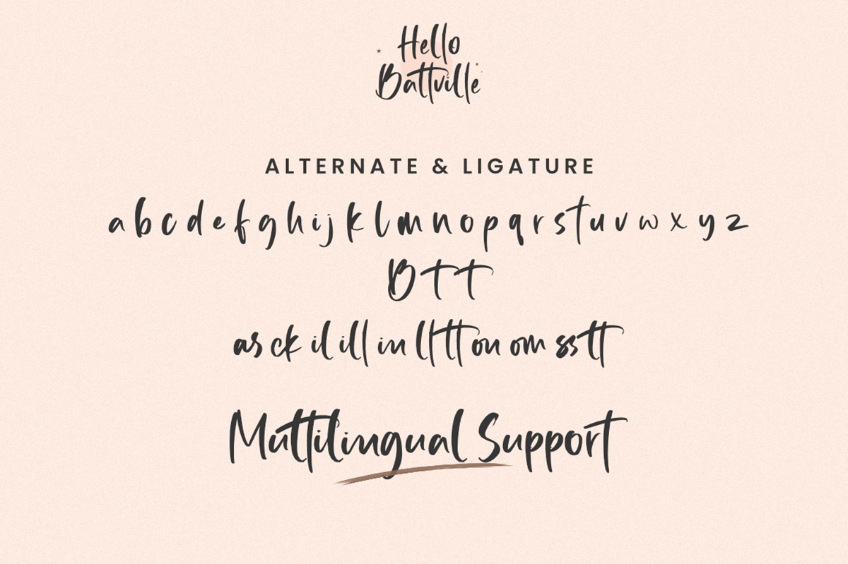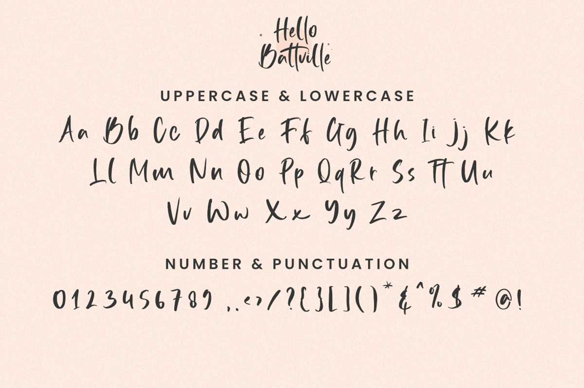 Thanks to Violatype for sharing with us this exquisite font! However, Hello Battville Script Font demo is only available for personal use. So, if you want to access more its full features and license, go get premium version as well!