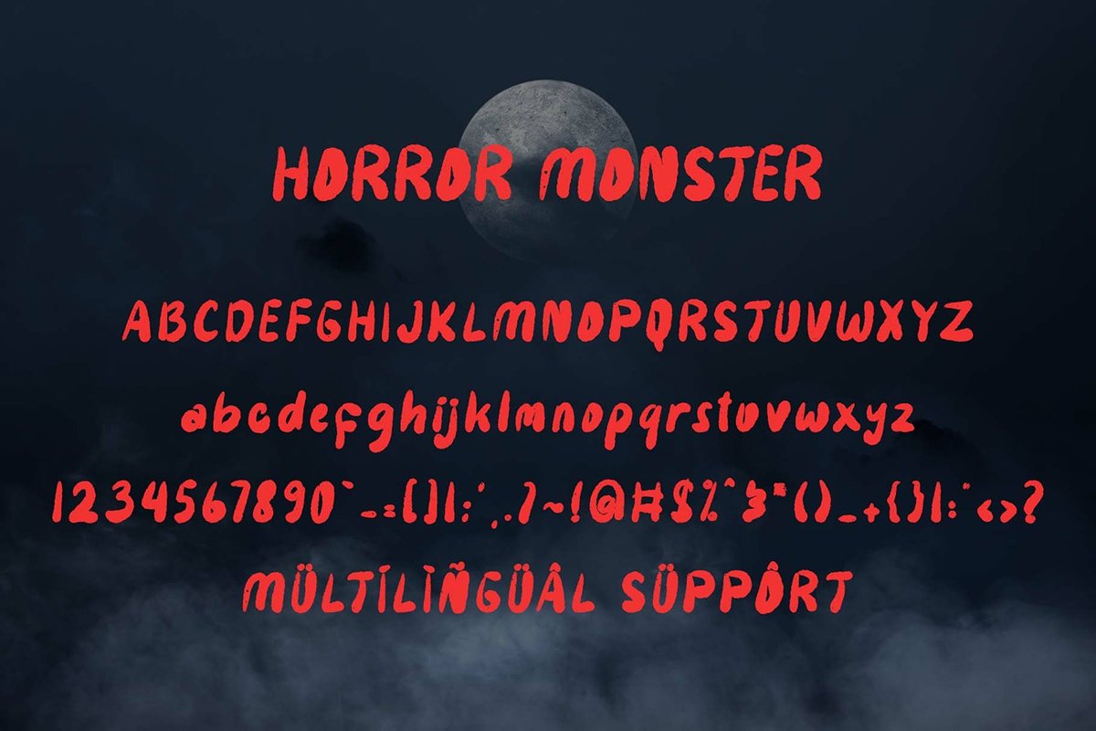 Thanks to Yoga Letters for sharing with us this exquisite font! However, Horror Monster Display Font demo is only available for personal use. So, if you want to access more its full features and license, go get the premium version as well!