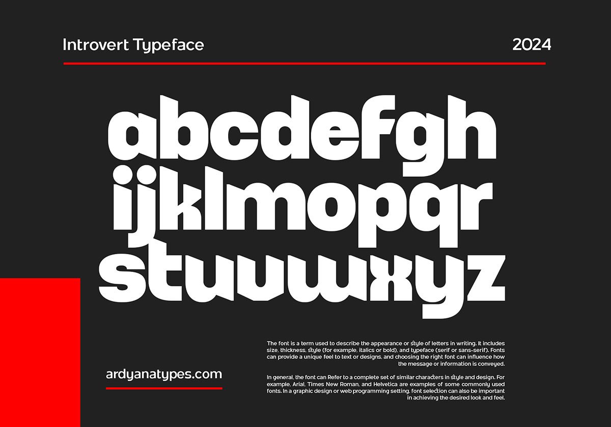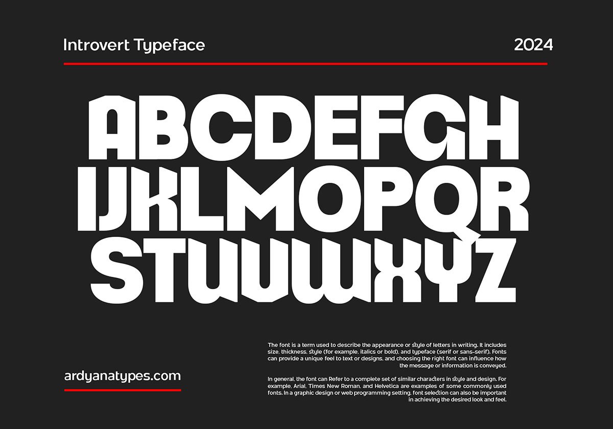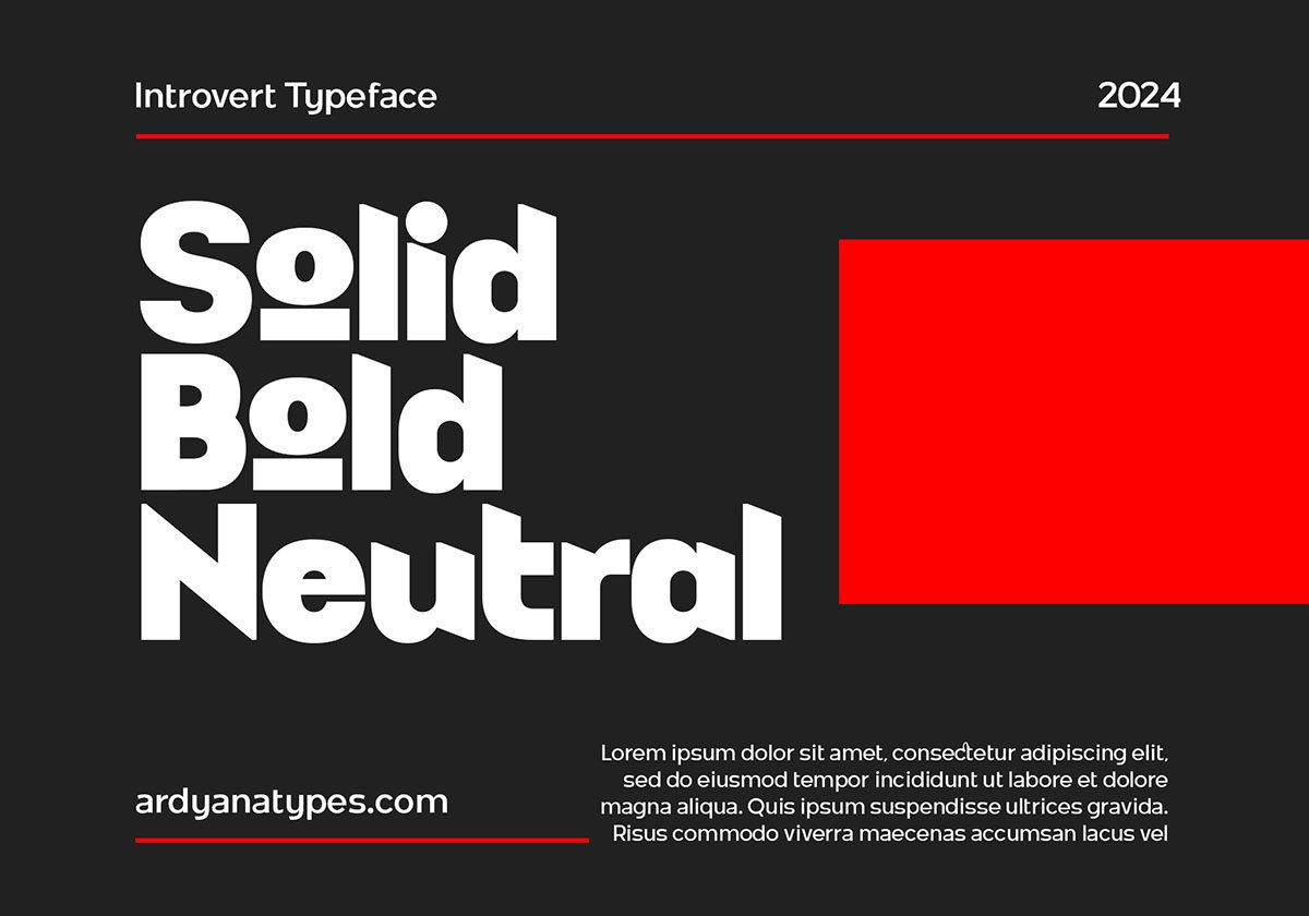 Introvert Display Font is here! It is a font that speaks volumes with its simplicity yet exudes unparalleled assertiveness. As a sans-serif typeface, Introvert is meticulously crafted with a unique form, offering extraordinary versatility for every design it graces. Its clean lines and sharp edges give it a commanding presence, making it perfect for projects that demand attention.
