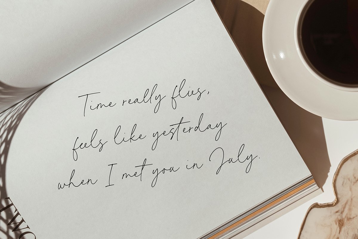 Kimberly Paradise Script Font is a Modern script font that is modern and fresh, and will bring a warm and inviting feel to your business. Take advantage of the fonts and experience the magic for yourself. This font is perfect for product packaging, branding project, magazine, social media, wedding, or just used to express words above the background.