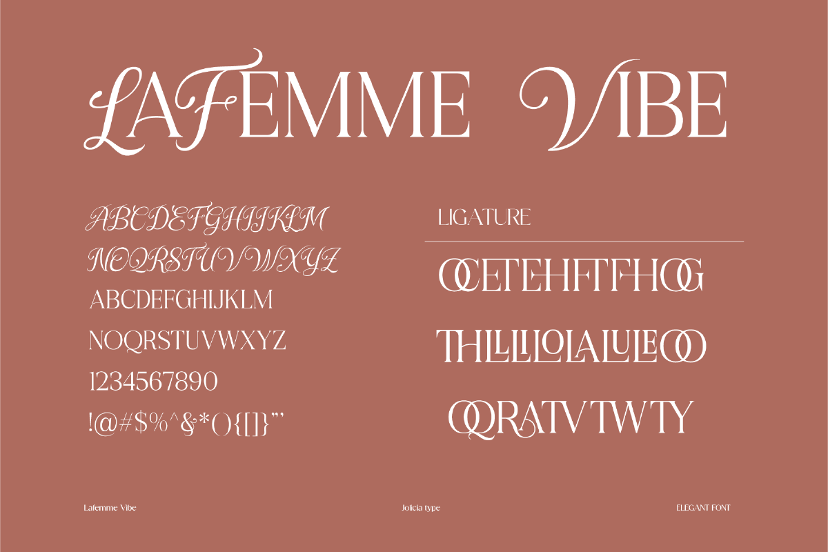 Thanks to Jolicia Type for sharing with us this exquisite font! However, this LaFemme Vibe – Serif Font is only a demo version available for personal use. So, if you want to access more its full features and license, go get the premium version as well!