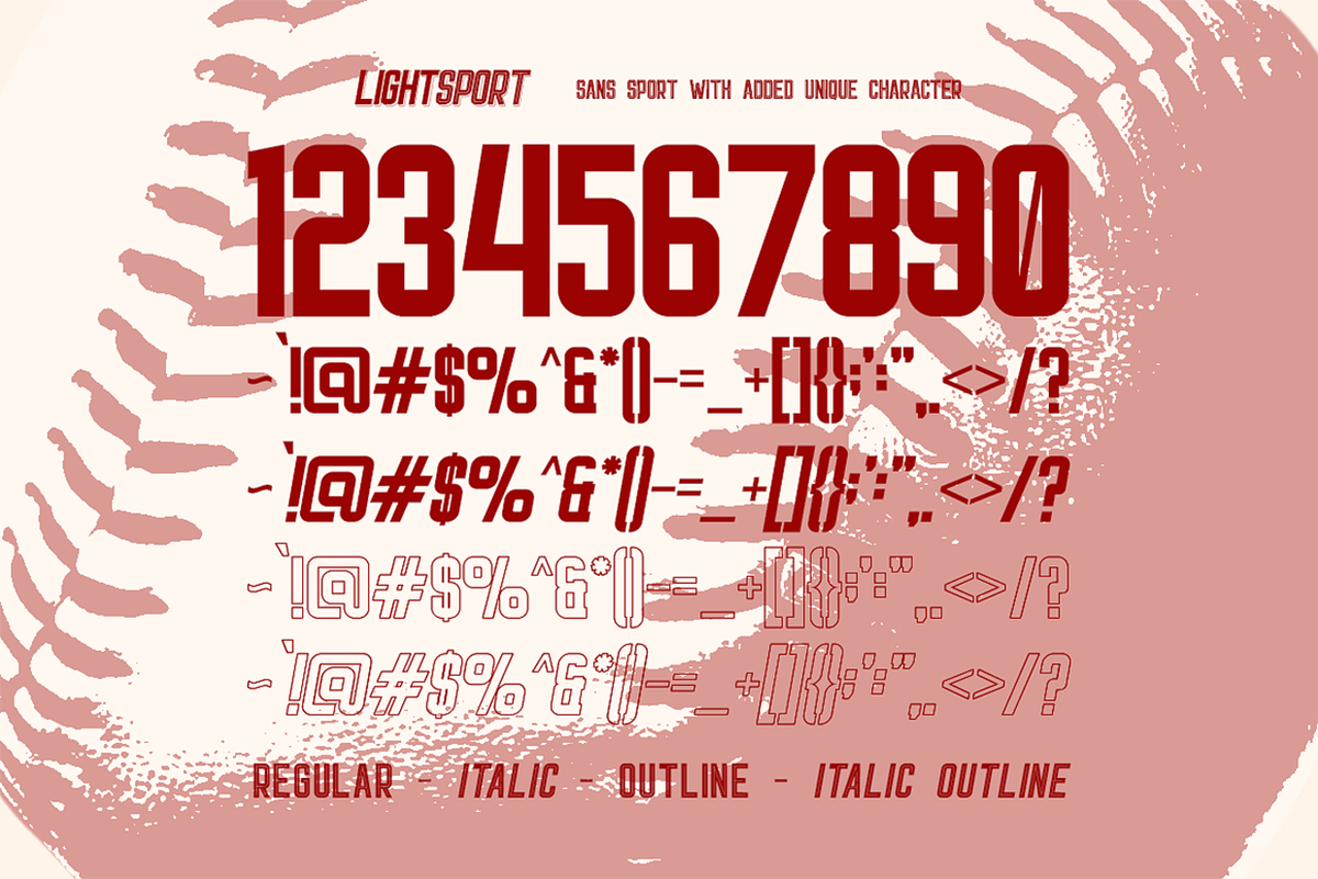 Light Sport – Sans Serif is here! This font comes with added unique characters. Ideal for logos, bold action graphics, and sporty designs, Light Sport is perfect for baseball themes, technology, and action-packed projects. This font adds dynamic flair to your headlines and titles. Light Sport’s unique characters and versatile design bring your ideas to life with modern energy.