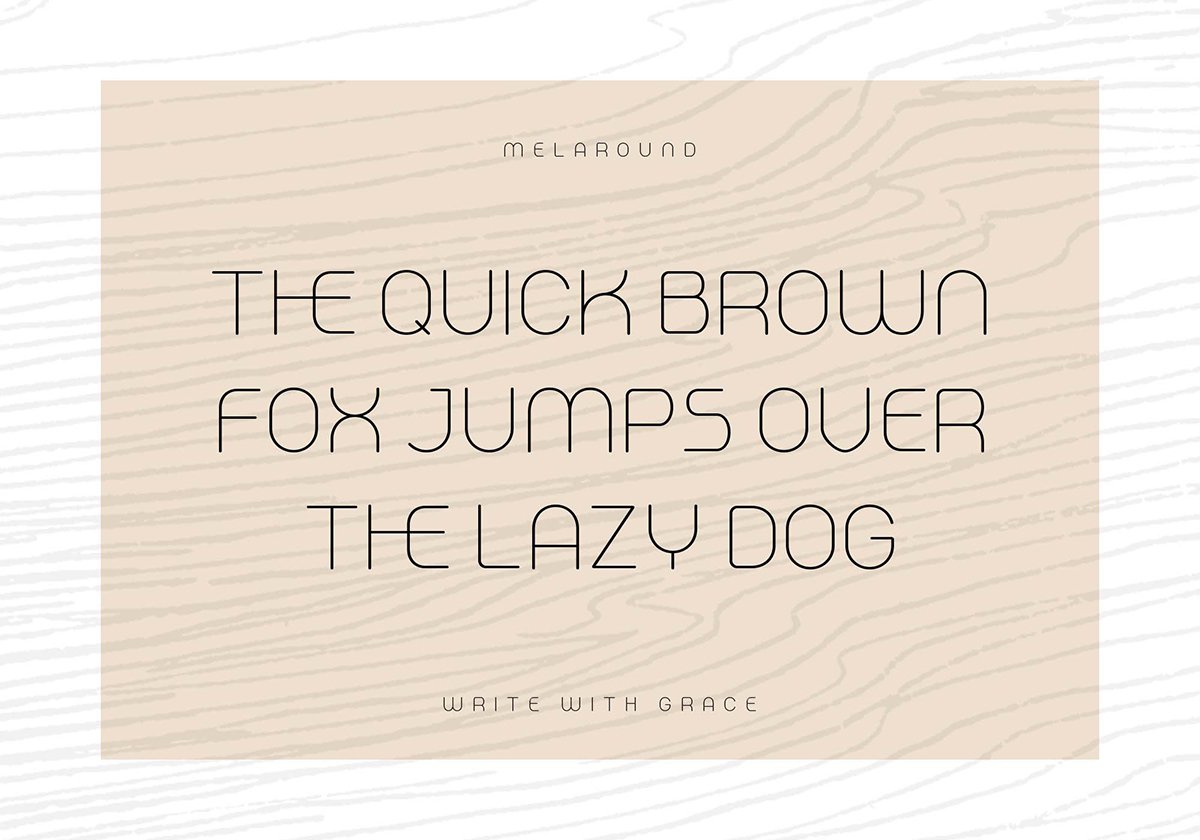 Introducing Melaround Display Font! It is a monoline display font that combines simplicity and beauty in every curve. This simple yet attractive design makes it the perfect choice for titles and text that want to stand out. With its easy readability and unique aesthetic, this font is suitable for any design, providing a professional and elegant touch. Make every work more stunning with Melaround. What are you waiting for? Improve the quality of your designs and achieve an unforgettable impression. Get it now, and start creating not only seen but also felt designs!