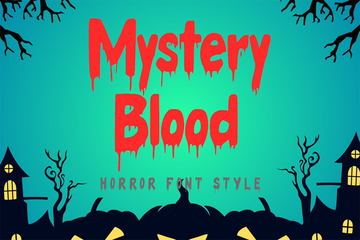 Mystery Blood – Display Font is a spooky horror font with blood dripping from every letter. It features uppercase and lowercase letters, ligatures, numbers, punctuation, and multilingual support. Perfect for Halloween, horror movie titles, horror comics, stickers, posters, banners, branding, Christmas, fall, autumn, logos, winter, holidays, mockups, t-shirts, and more.