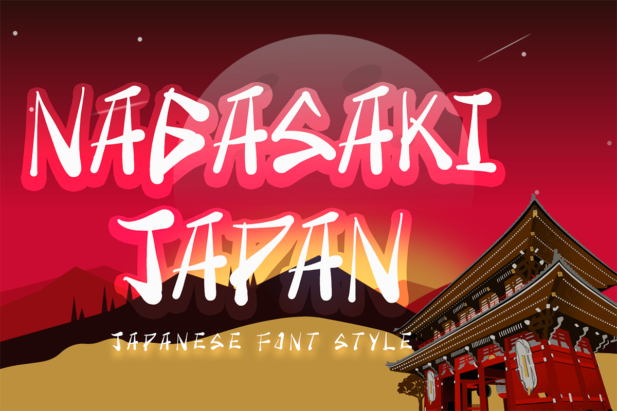 Nagasaki Japan – Display Font is an fun Japanese style font. It comes with capital letters, lowercase letters, numbers, punctuation, and multilingual support. It is perfect for business branding, Japanese restaurants, banners, branding, stickers, posters, prints, restaurant logos, movie titles, and more.