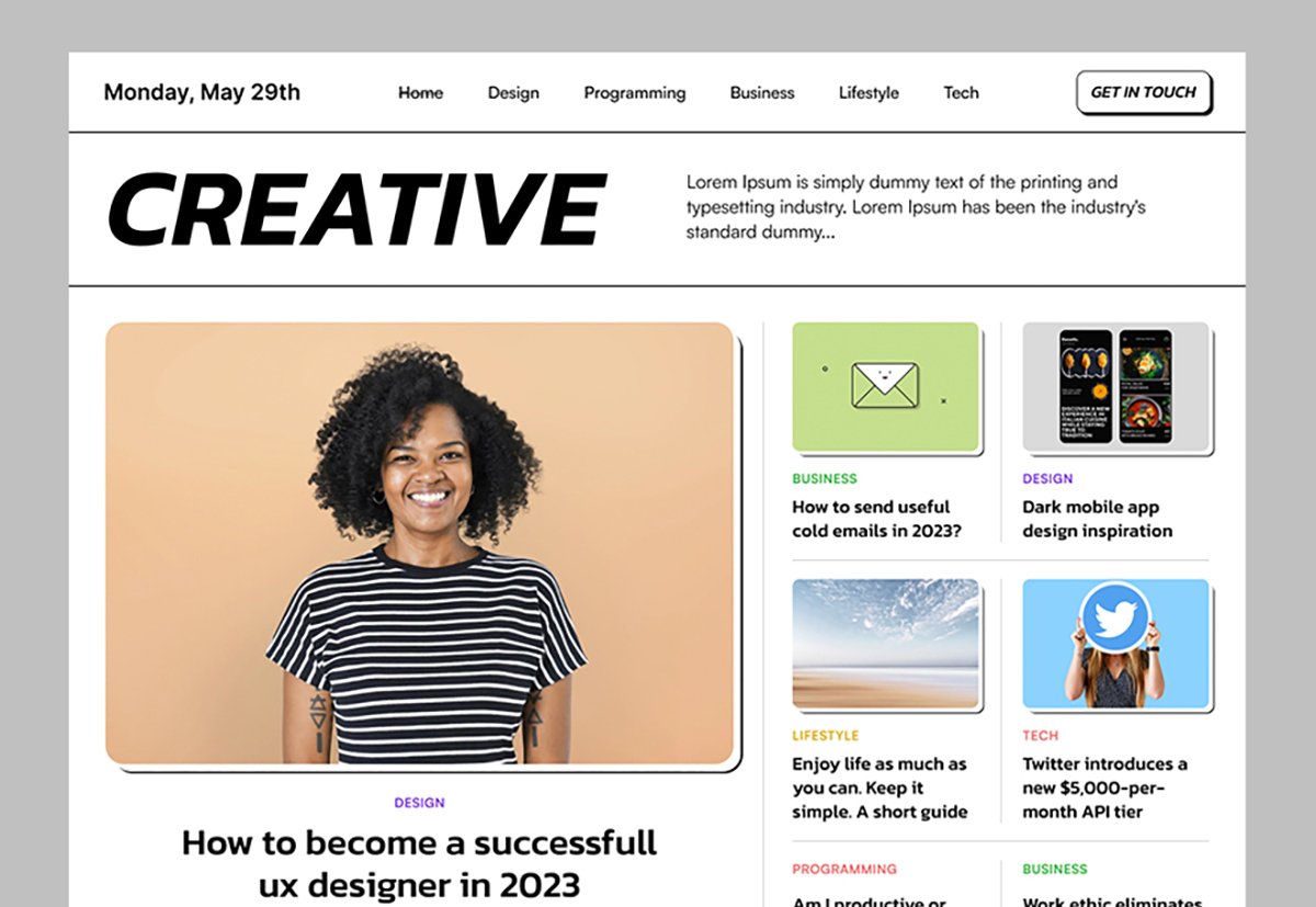 Neobrutalism – Figma Template is a competent magazine layout with a solid structure with a fully responsive grid that takes the entire real estate so no space is wasted.