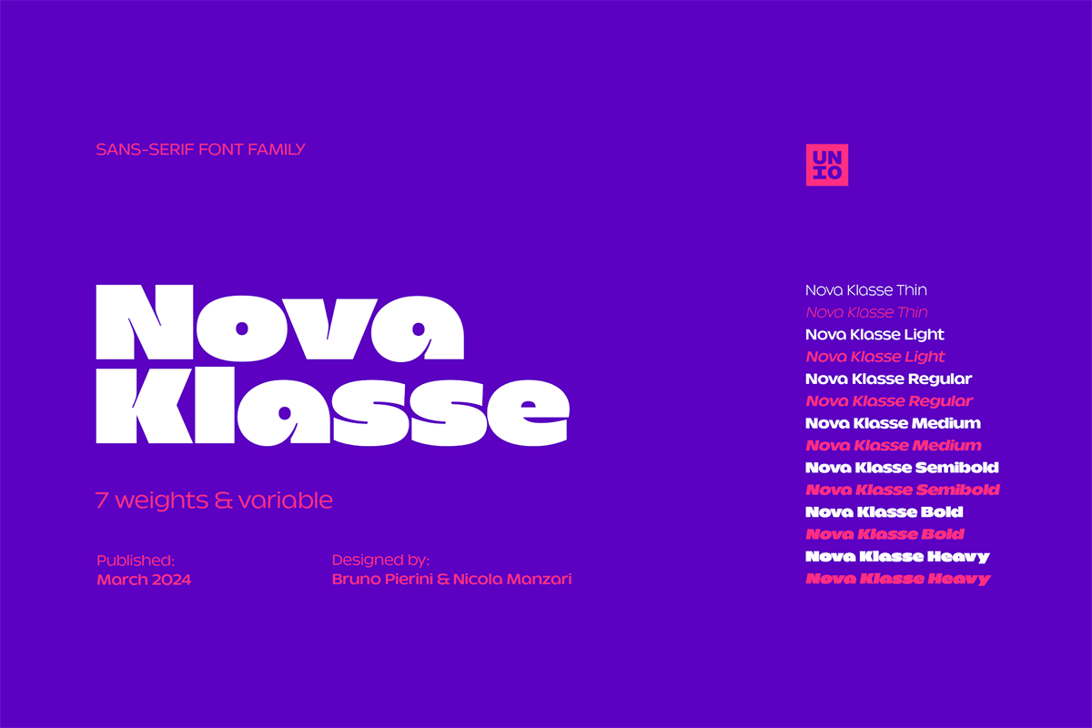 Nova Klasse Display Font is a modern geometric sans serif typeface that bursts with personality. It combines circular and rectangular shapes to create a distinct look, while incorporating organic details and unconventional touches for added warmth and character. This playful spirit is grounded in strong design principles – form, space, and viewer interaction – all key elements of modern design.
