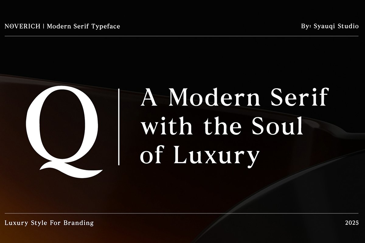 Introducing Noverich – Display Serif Font! It is an elegant modern serif typeface that embodies both luxury and clarity. Designed with refined high-contrast strokes, sharp terminals, and graceful curves, it strikes a perfect balance between timeless sophistication and contemporary design trends. Perfect for editorial headlines, branding projects, fashion magazines, logos, invitations, luxury packaging, and more.