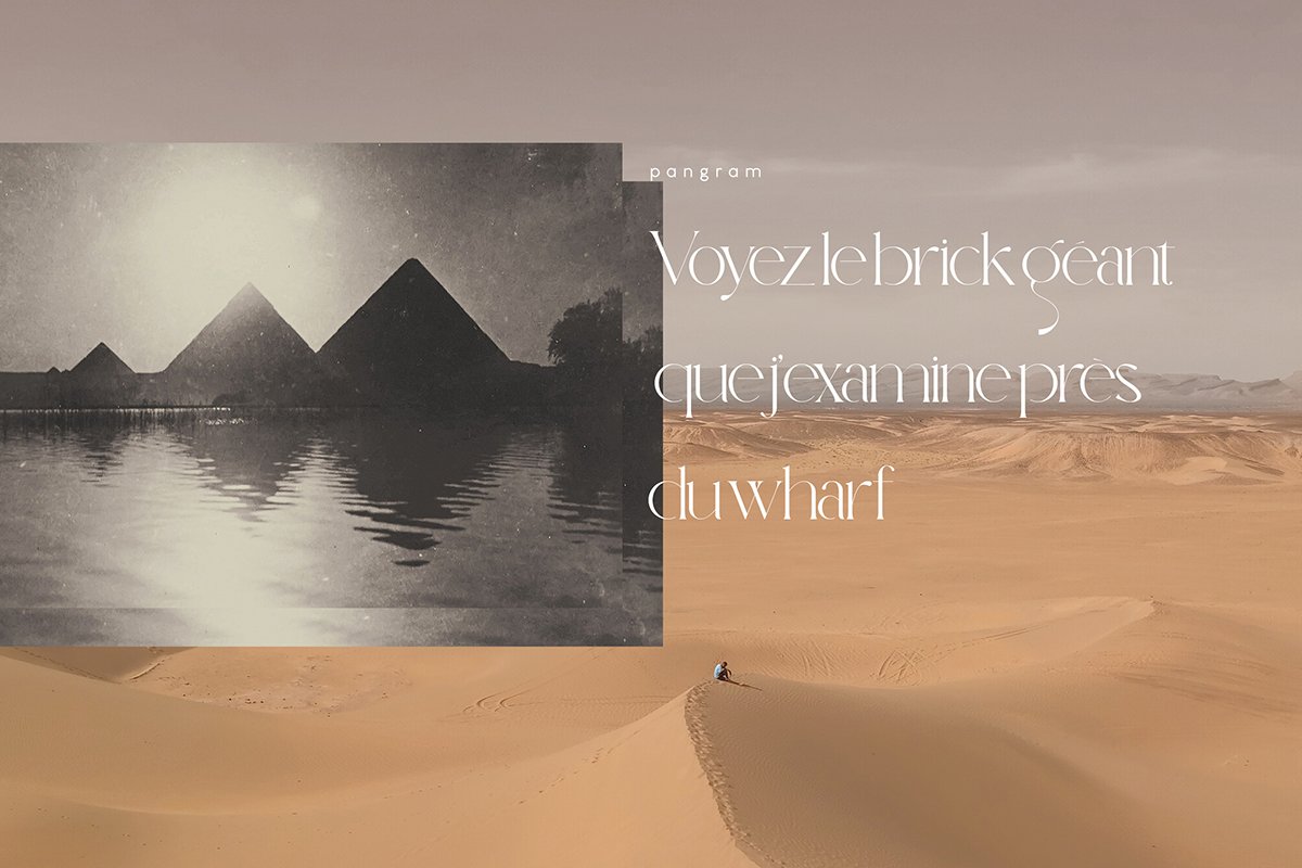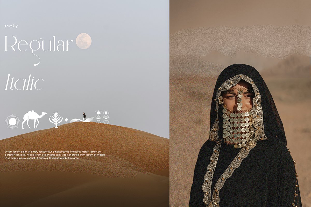 Oleragie Elegant Serif is a classic modern serif with an aesthetic look inspired by the Egyptian and middle east atmosphere. Perfect for those who need a touch of elegance, stylish, classy, beautifully thin, and modernity for their design.