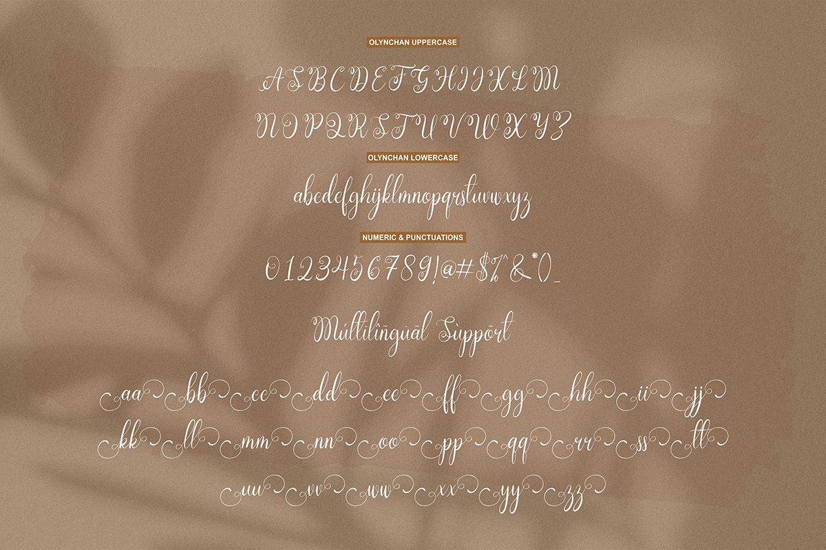 Olynchan Script Font is a dazzling script font by Essentials Studio. This font is neatly crafted and highly detailed. Whatever the topic, this font will be a wonderful asset to your font library, as it has the potential to enhance any creation.