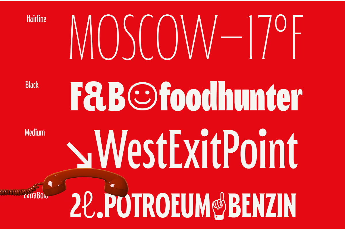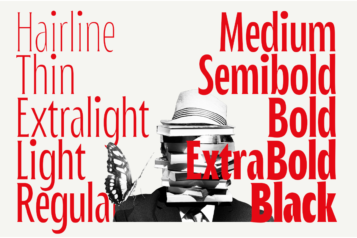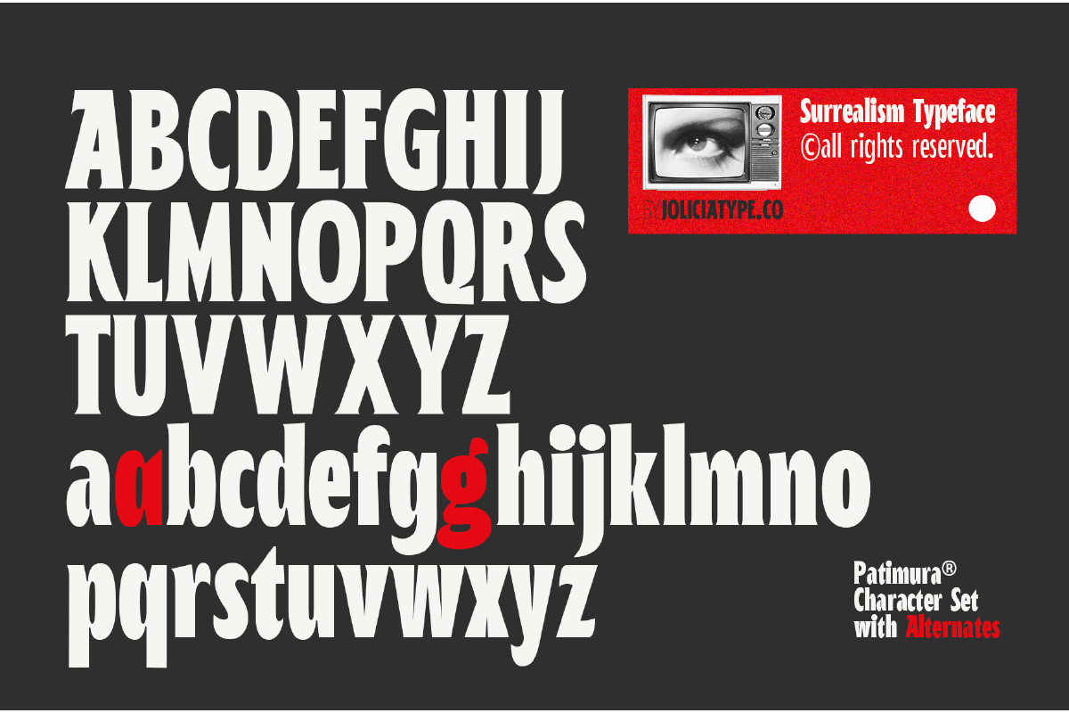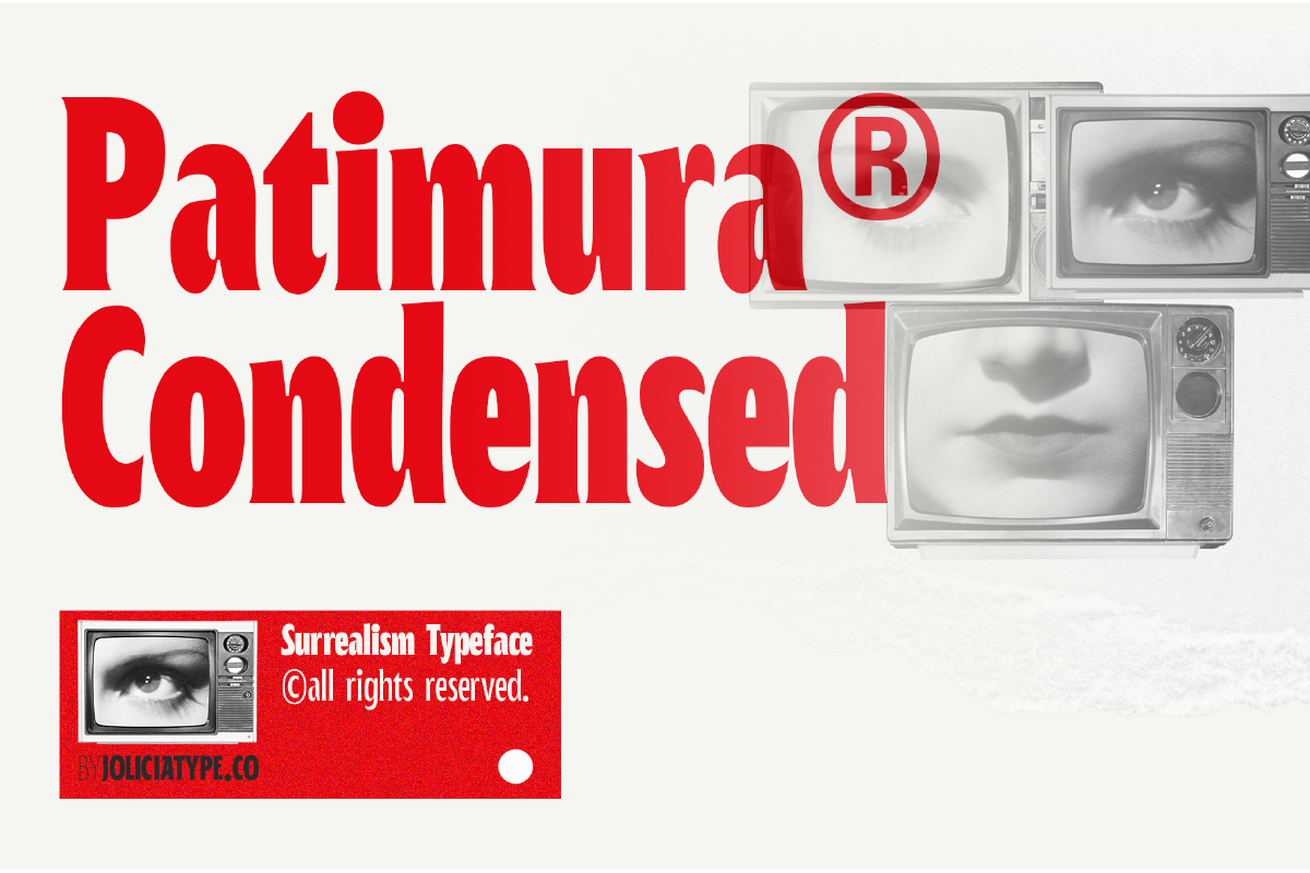 Patimura Condensed – Surrealist Typeface is a modern typeface. It is infused with the spirit of surrealism, designed for creative professionals seeking a unique visual impact. This versatile font family features 10 weights, ranging from delicate Hairline to commanding Black, making it ideal for a wide variety of design projects, including editorial layouts, branding, packaging, and advertising.