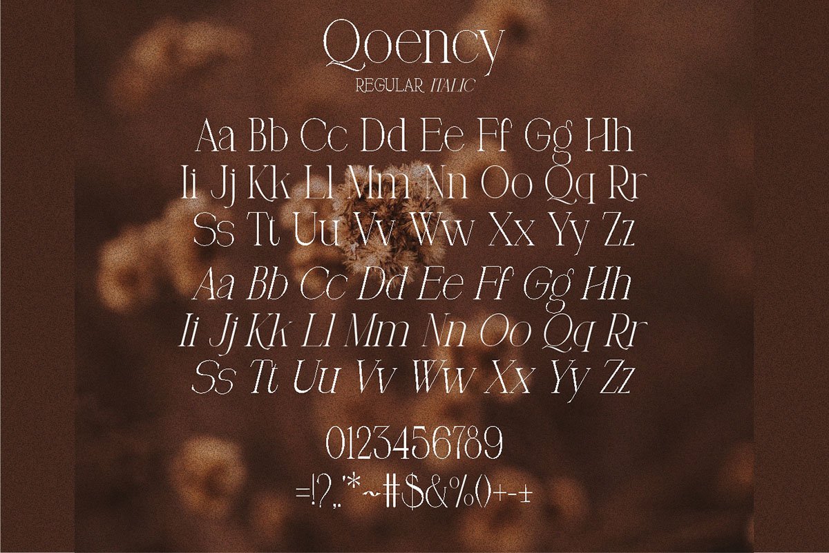 Thanks to glyphstyle for sharing with us this exquisite font! However, Qoency Modern Serif demo is only available for personal use. So, if you want to access more its full features and license, go get the premium version as well!