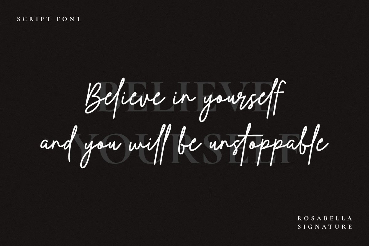 Rosabella Signature Font is a simple and elegant font that can be interpreted as professional. We try to make this font smooth, elegant, classy, easy to read, and attractive to use for branding projects, logotypes, social media posts, advertisements, product packaging, product designs, label, photography, watermark, invitation, and others you need use this font.