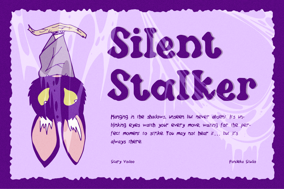 Scary Vodoo – Display Font is a spooky display typeface with eerie, dripping details, perfect for horror posters, Halloween invitations, haunted house flyers, creepy branding, eerie packaging, and themed merchandise. Its haunted style and unique lettering add the perfect touch of chilling aesthetics to a