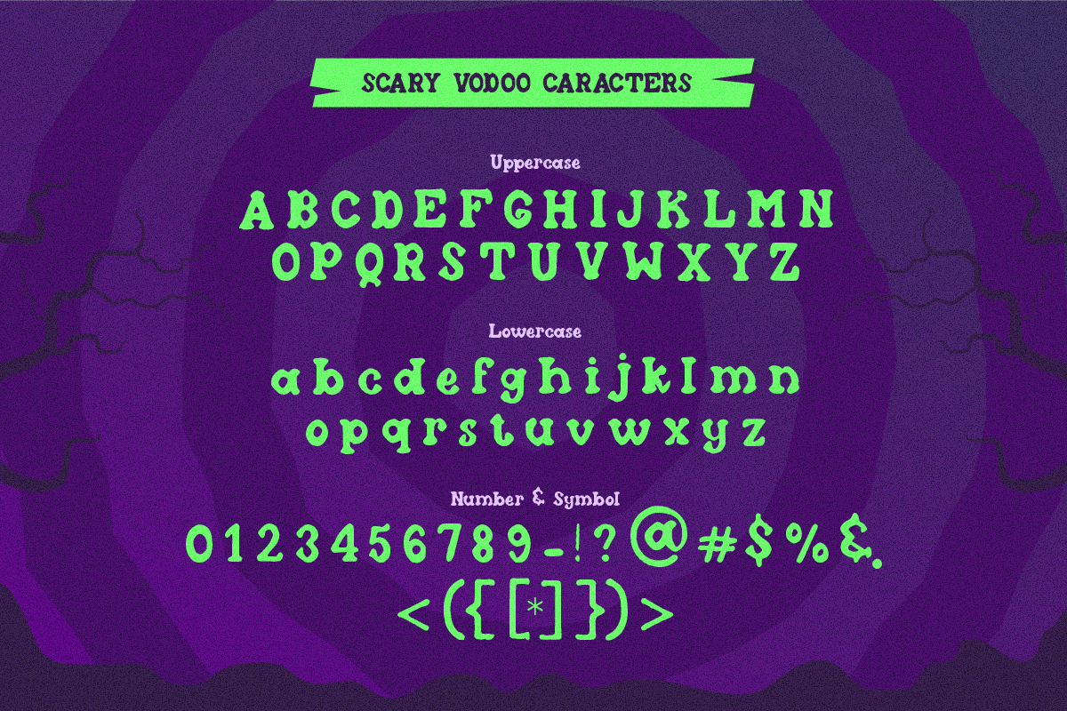 Thanks to Pandeka Studio for sharing with us this exquisite font! However, this Scary Vodoo – Display Font is only a demo version available for personal use. So, if you want to access more its full features and license, go get the premium version as well!
