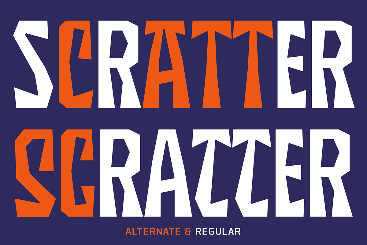 Scratter Display Font is a dynamic and eye-catching font that is sure to make any design stand out. With its sharp and crisp edges, this font exudes a sense of boldness and confidence that is perfect for headlines, logos, and branding projects.