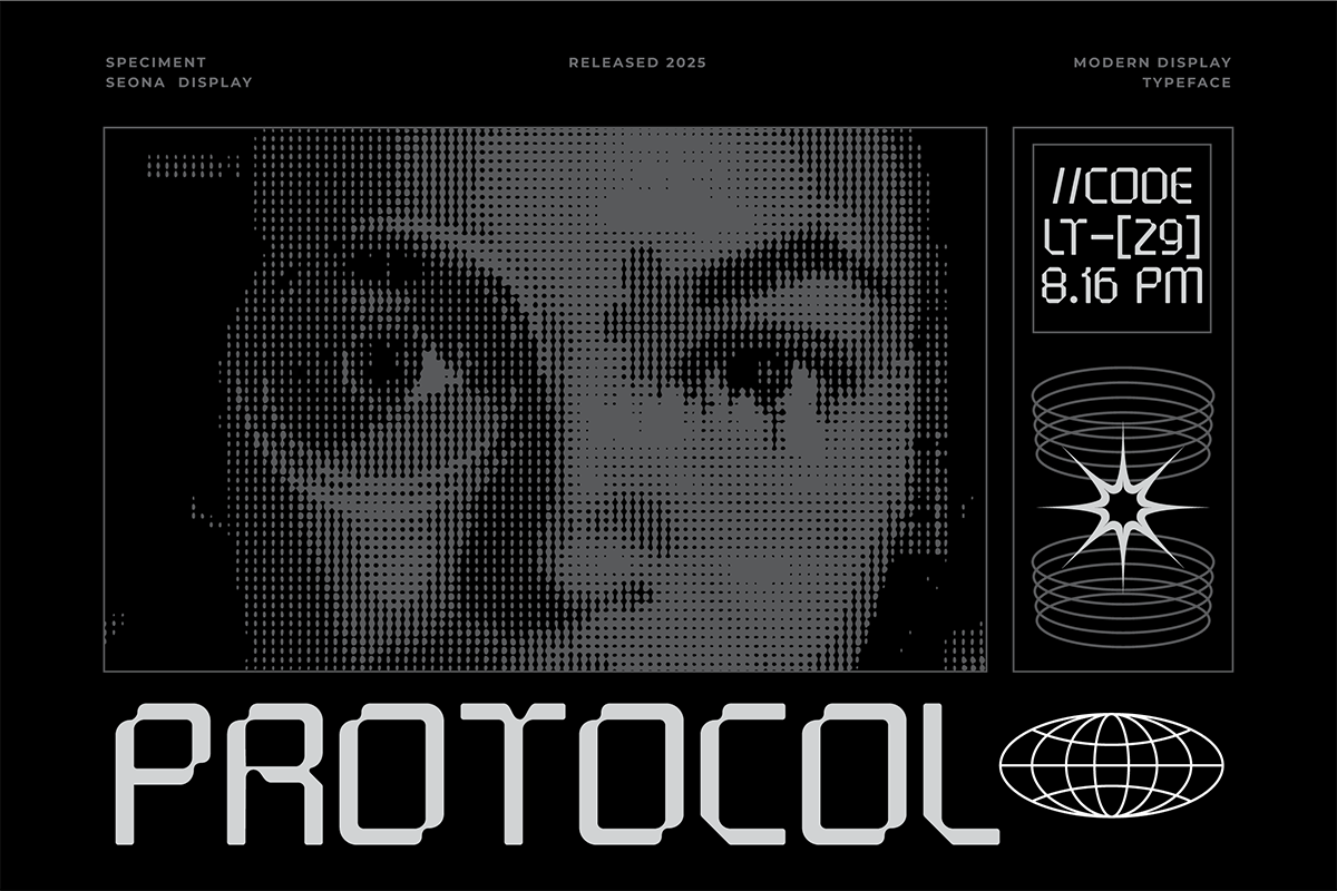 Seona – Futuristic Font is display font with a unique and slightly experimental letterform style. Its modern design, paired with distinctive connection shapes, gives it a bold and forward-looking character. Perfect for projects that aim to evoke a high-tech, robotic, or futuristic feel.