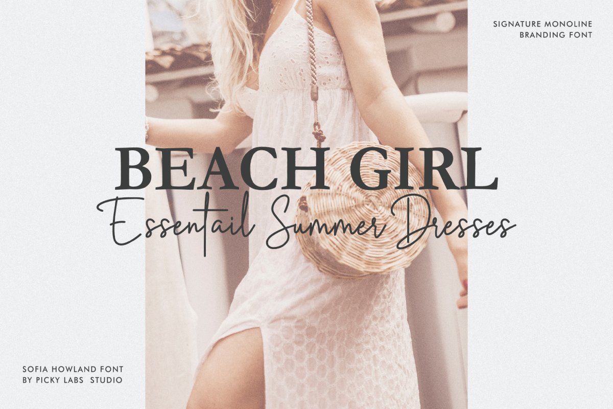 Sofia Howland Script Font is a signature feminine font. Every single letter is carefully crafted to make your text looks beautiful. This font contains some ligatures. Sofia Howland matches apply in some designs such as the logotype, branding, product packaging, merchandise, social media project, headline magazine, headers, quotes, business cards, and more custom designs.